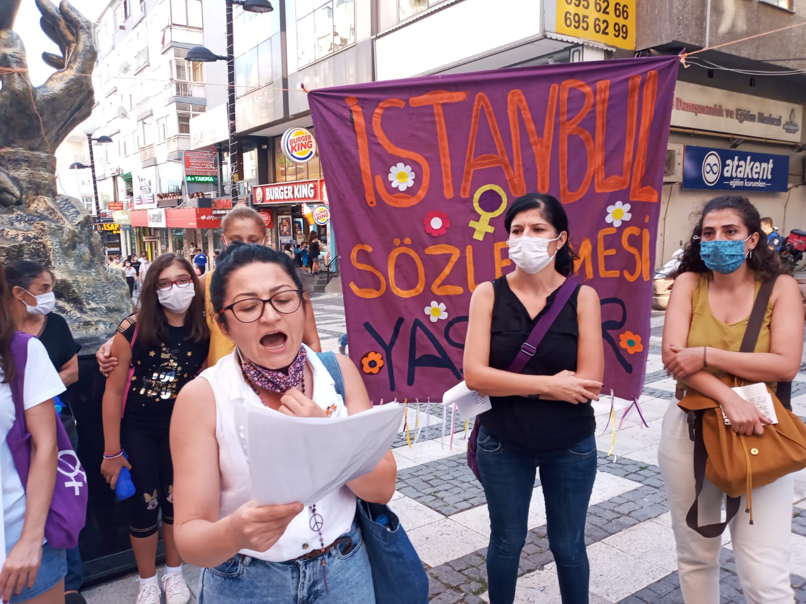Kadınların kazanımı olan İstanbul Sözleşmesi’ne yönelik saldırılara dikkat çeken Yıldırım, “Bahsedildiği gibi aileyi parçalayan İstanbul Sözleşmesi ve sözleşmeyi savunanlar değil, erkek şiddeti ve bu şiddeti önlemek için oluşturulan sözleşmenin gereklerini yerine getirmeyenlerdir. İstanbul Sözlemesi’nin nefret diliyle beslenen ırkçı, gerici kesimlerce hedef alınmasının nedeni sözleşmenin ırk, renk, dil, din, siyasi veya başka tür görüş, cinsel yönelim ve cinsiyet kimliği, medeni hal, göçmenlik statüsü gibi nedenlerle hiçbir kesimin ayrımcılığa uğramamasını temin etmesidir” ifadelerini kullandı.