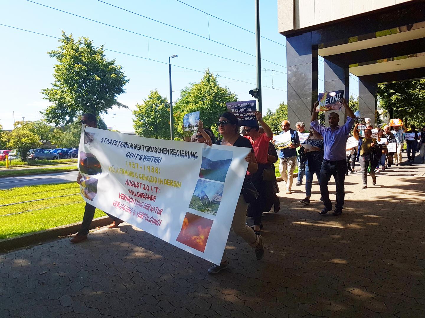 Demokratik Alevi Federasyonu (FEDA), Avrupa Dersim Dernekleri Federasyonu (FDK), Avrupa Dersim Birlikleri Federasyonu’nun (ADEF) , Dersimi Yeniden İnşa Derneği tarafından yapılan ortak basın açıklamasında, Dersim’deki yangının derhal durdurulması çağrısı yapıldı.Oturma eyleminin ardından Parlamento’dan Düsseldorf Tren Garı’na kadar yürüyüş gerçekleştirildi. Tren Garı’nın önünde okunan Almanca bildiri ile çevredekiler bilgilendirildi.