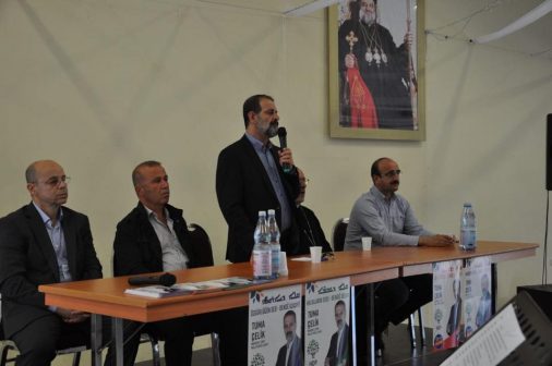 Evrensel’den Selçuk Kozan’ın haberine göre, Gütersloh Süryani Kilisesinde yapılan toplantıda Avrupa Süryaniler Birliği Türkiye Sorumlusu ve Sabro Gazetesi’nin Genel Yayın Yönetmeni olan ve seçimlere HDP Mardin Milletvekili Adayı olarak katılan Tuma Çelik de hazır bulundu.