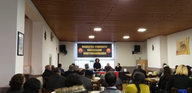 Almanya’nın Stuttgart kentinde yapılan panele HDP İstanbul milletvekili Zeynel Özen, MARDEF Eş başkanı Safiye İşcan, MARDEF yöneticisi Mehmet ve Maraş katliamı tanığı Ayşe Traş katıldı.