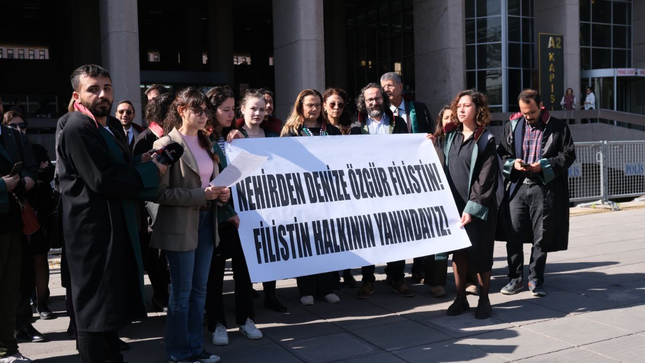 Adalet İçin Hukukçular, Çağdaş Hukukçular Derneği (ÇHD) Ankara Şubesi, Demokrasi İçin Hukukçular ve Toplumsal Hukuk, Sıhhiye Adliyesi önünde basın açıklaması yaptı. Açıklamaya cübbeleri ile katılan avukatlar emperyalist saldırılara ve siyonist işgale karşı Filistin halkı ile dayanışma vurgusu yaptı.