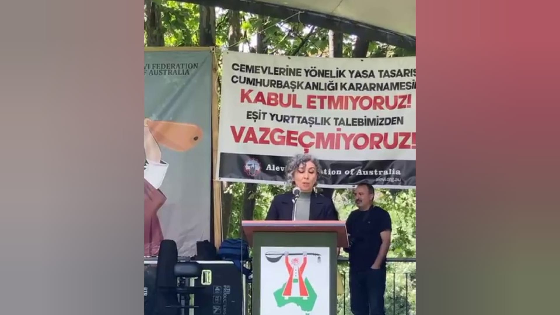 Alevilere, Kürtlere, Ermenilere, kadınlara, LGBTI+lara uygulanan şiddet ve hak ihlalleri için toplumsal dayanışmayı her alanda genişletilmediğinde kurtuluşlarının olmadığını söyleyen Avustralya Alevi Bektaşi Federasyonu Başkanı Suzan Saka, “Türkiye’de yaşayan Aleviler yoluna ve ulularına sahip çıkmalı, sinsice yapılan her türlü manevraya karşı uyanık olmalı. Alevi inancını Alevilerden başka kimse tanımlayamaz. Aleviler, daracığında can veren Pir Sultan’ı, En-el Hakk diyen Hallac-ı Mansur’un evlatlarıdır. Kendisine dayatılan torba yasasında Aleviliği bir kültür olarak tanımlayan ibarenin aslında bir oyundan başka bir şey olmadığını, inancımızın sadece bir kültürden ibaret olmadığını ve devlet inancı olmadığını hiç unutmamalıyız” dedi.