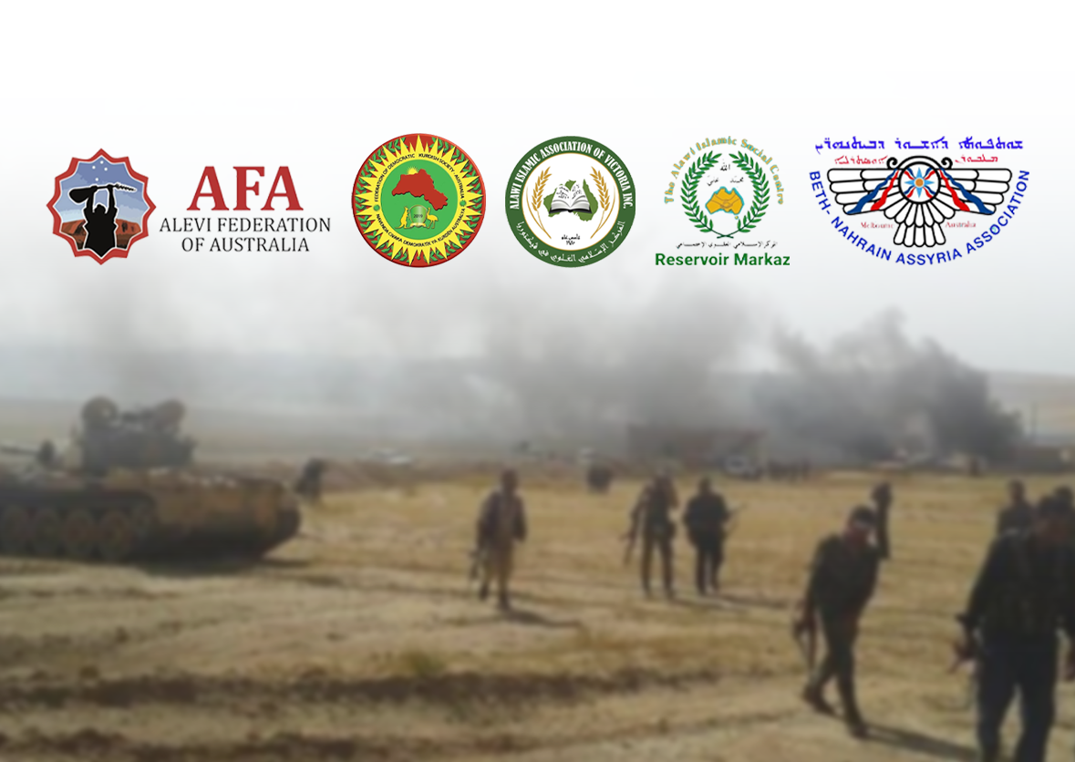 Avustralya Alevi Bektaşi Federasyonu, Avustralya Demokratik Kürt Toplumu Federasyonu, Victoria Alevi İslam Derneği, Alevi İslami Sosyal Merkezi (Reservoir Markaz) ve Beth-Nahrain Süryani Derneği, Suriye’de Kürtlere ve diğer azınlıklara yönelik süregelen saldırılara ilişkin ortak bir basın açıklaması yayımladı.