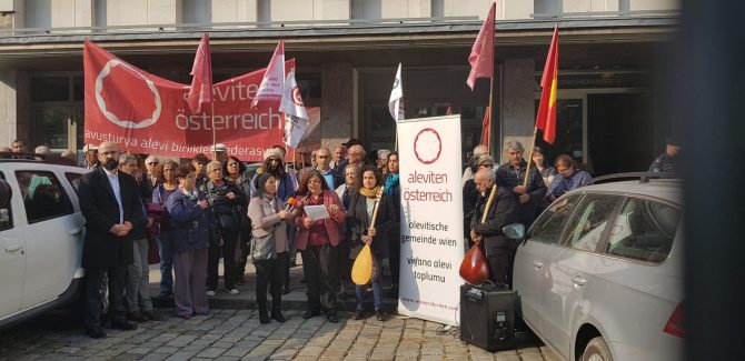 Avusturya Alevi Birlikleri Federasyonu, Avusturya Kültür Bakanlığı önünde konuyla ilgili oturma eylemi ve basın açıklaması yaptı. Açıklama Almanca olarak Viyana Alevi Toplumu üyesi Hatice İlter okudu. Açıklamada, “Avusturya Alevi Birlikleri Federasyonu’na bağlı çağdaş Alevi kurumlarının kapatılmasını isteyen İslam Alevi Derneği’nin şikayetiyle harekete geçen Avusturya Kültür Bakanlığı’nı protesto ediyoruz. Aleviyiz Alevi kalacağız. Dönen dönsün biz dönmeyiz yolumuzdan” denildi.