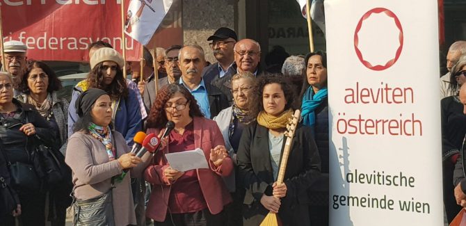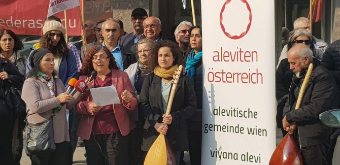 Avusturya Alevi Birlikleri Federasyonu, Avusturya Kültür Bakanlığı önünde konuyla ilgili oturma eylemi ve basın açıklaması yaptı. Açıklama Almanca olarak Viyana Alevi Toplumu üyesi Hatice İlter okudu. Açıklamada, “Avusturya Alevi Birlikleri Federasyonu’na bağlı çağdaş Alevi kurumlarının kapatılmasını isteyen İslam Alevi Derneği’nin şikayetiyle harekete geçen Avusturya Kültür Bakanlığı’nı protesto ediyoruz. Aleviyiz Alevi kalacağız. Dönen dönsün biz dönmeyiz yolumuzdan” denildi.