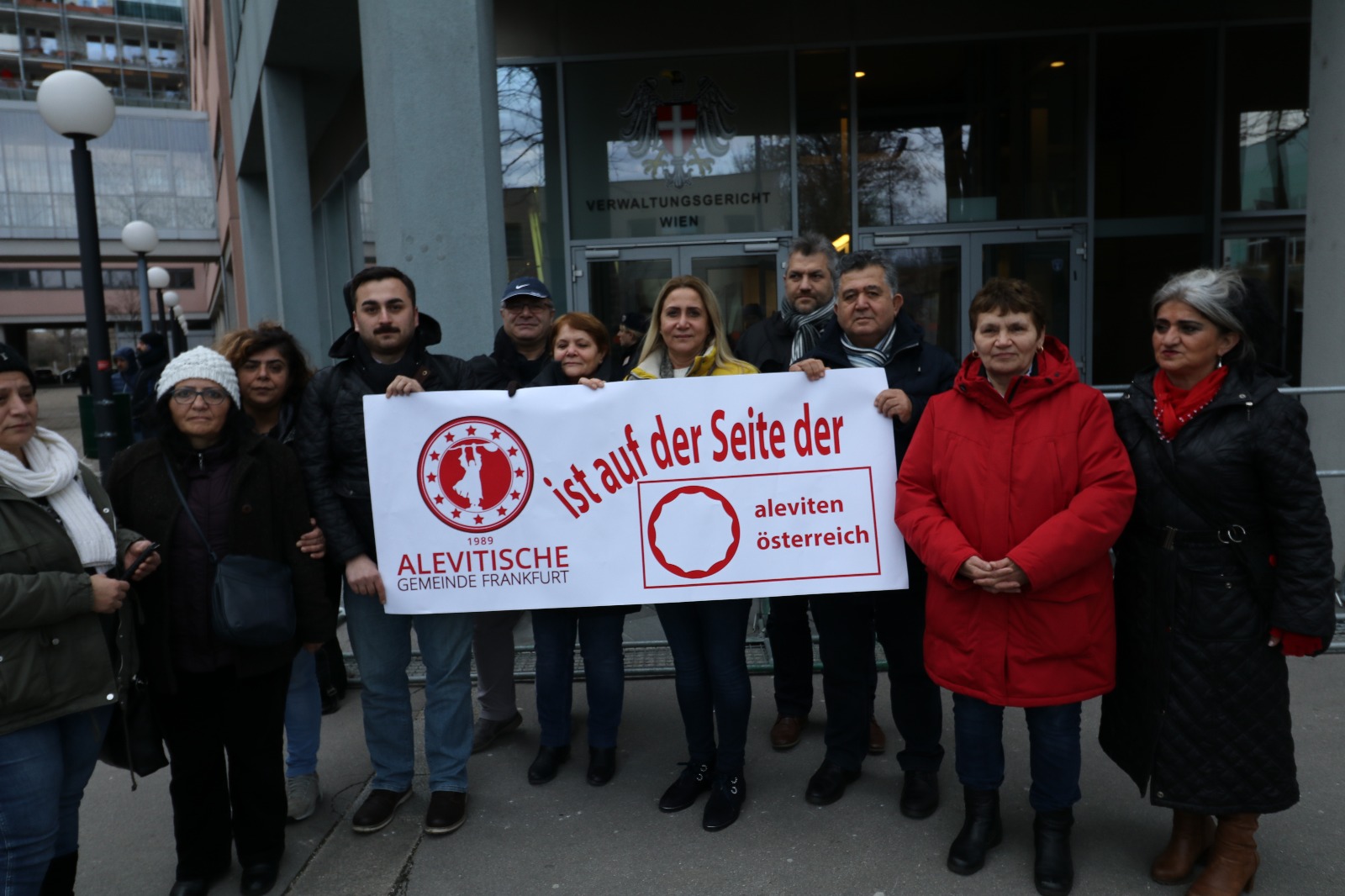 Viyana Yüksek İdari Mahkemesi’nde görülen dava öncesi Avrupa’nın bir çok ülkesinden Viyana’ya gelen yaklaşık bin kişi, Aleviliğin kendine özgü bir inanç olduğunu ve bunun İslam Yasası” çerçevesinde yasallaştırılmış olmasının kabul edilemez olduğunu belirten dövizler taşıdılar.
