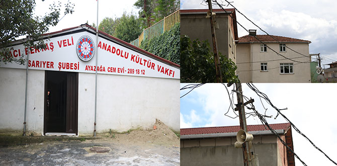 İstanbul Sarıyer’deki Hacı Bektaş Veli Anadolu Kültür Vakfı (HBVAKV) Sarıyer Şubesi Ayazağa Cemevi ve Alevilerin evlerinin önünde bulunan elektrik direklerine 2 yıl önce kimliği henüz belirlenmeyen şahıslarca toplam 22 hoparlör takıldı. Bu direklerdeki hoparlörlerden yüksek sesle ezan yükselmeye başladı.