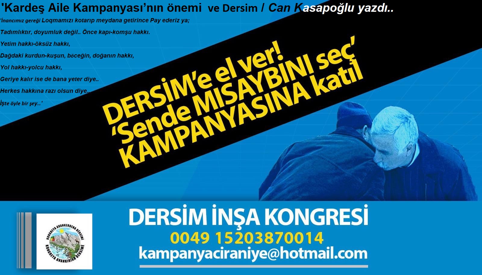 Sanatçı, aydın, gazeteci ve yazarlar, HDP Dersim İl Örgütü ve Dersim İnşa Kongresi’nin koronavirüs sürecine dair yürüttüğü ‘Kardeş Aile Kampanyası’na çağrı yaptılar.
