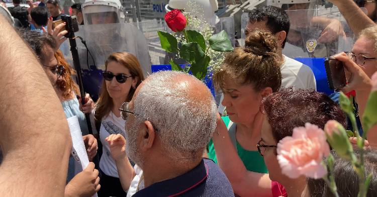 950’inci haftada bir araya gelen Cumartesi Anneleri ve insan hakları savunucuları Galatasaray Meydanı’na karanfil bırakmak istedi. Polis Cumartesi Annelerini önce ablukaya aldı ardından Anayasa Mahkemesi( AYM)’nin ‘ihlal’ kararına rağmen gözaltına aldı. 20 kişi gözaltına alınırken, eylem sırasında yapılan müdahaleyi görüntülemek isteyen basın mensuplarına polisler tarafından engellenmek istendi. PİRHA muhabirinin de aralarında bulunduğu gazetecilere polis şiddet uyguladı. İlgili videoya buradan ulaşabilirsiniz