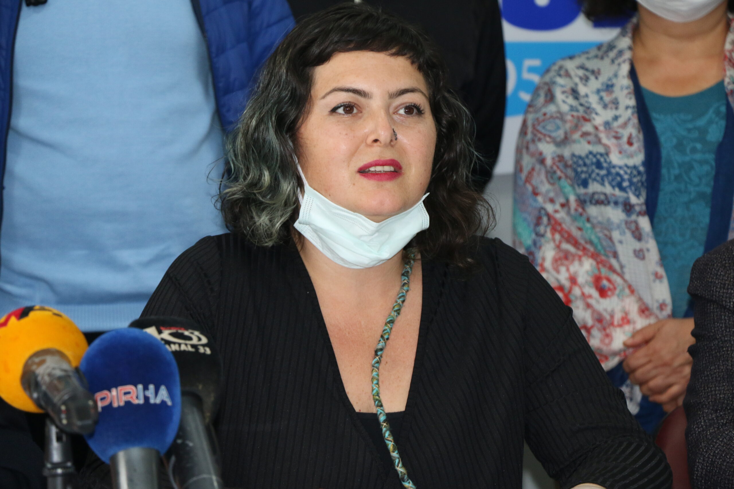 Sağlık ve Sosyal Hizmet Emekçileri Sendikası (SES) Mersin Şubesi’nde yapılan açıklamayı platform adına SES Mersin Şube Eş Başkanı Özge Göncü okudu.
