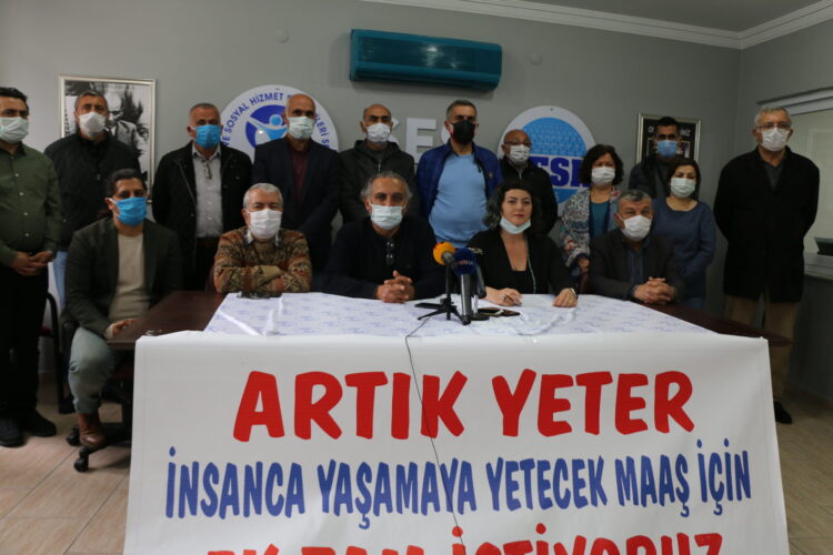 Mersin KESK Şubeler Platformu “Artık yeter insanca yaşamaya yetecek maaş için ek zam istiyoruz” konulu basın açıklaması yaptı.
