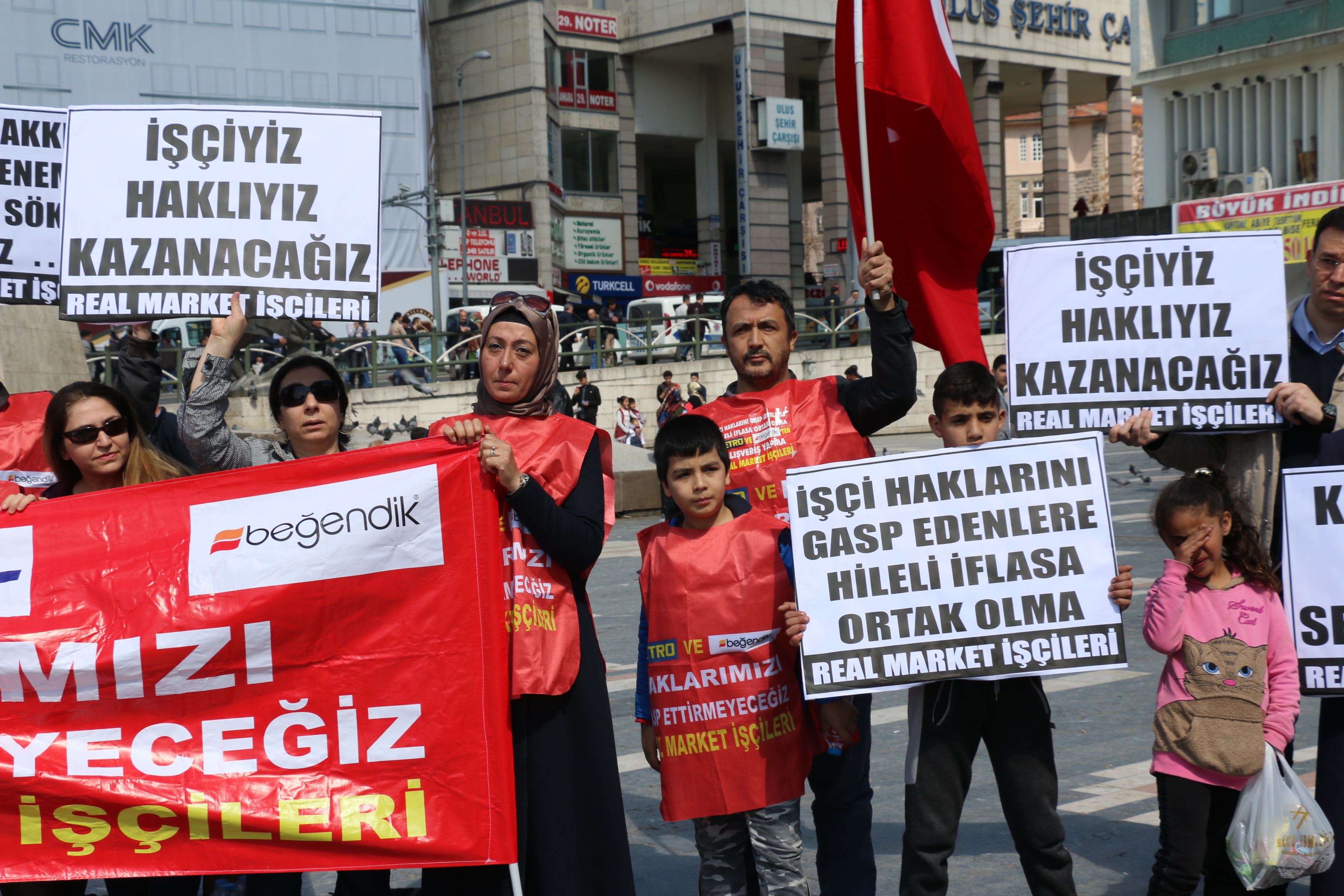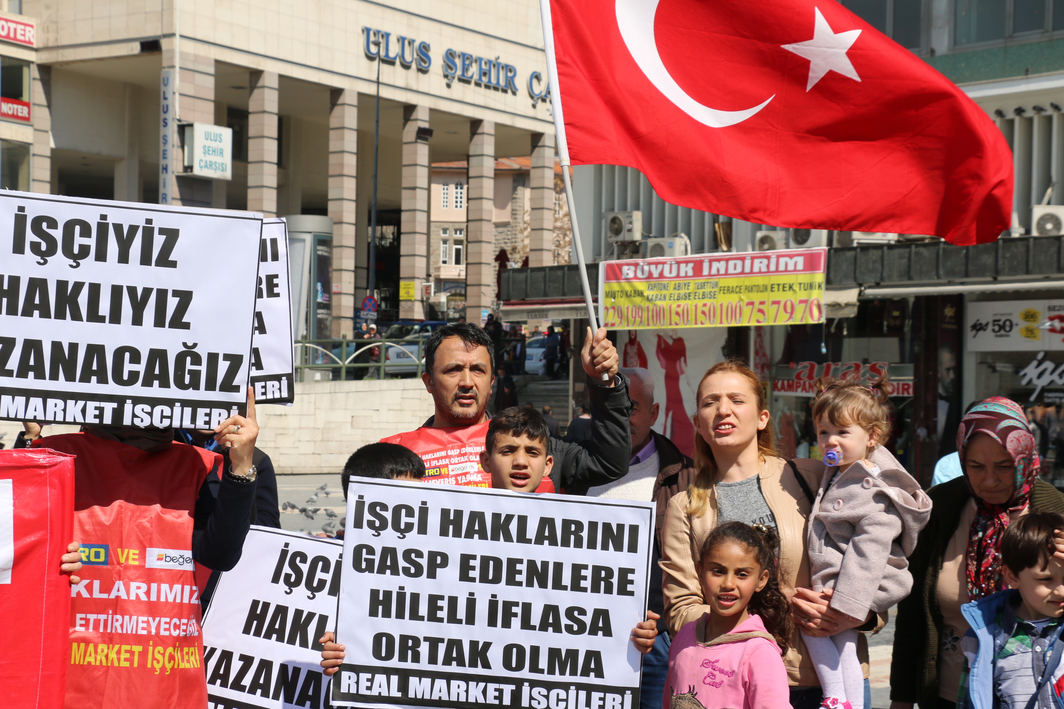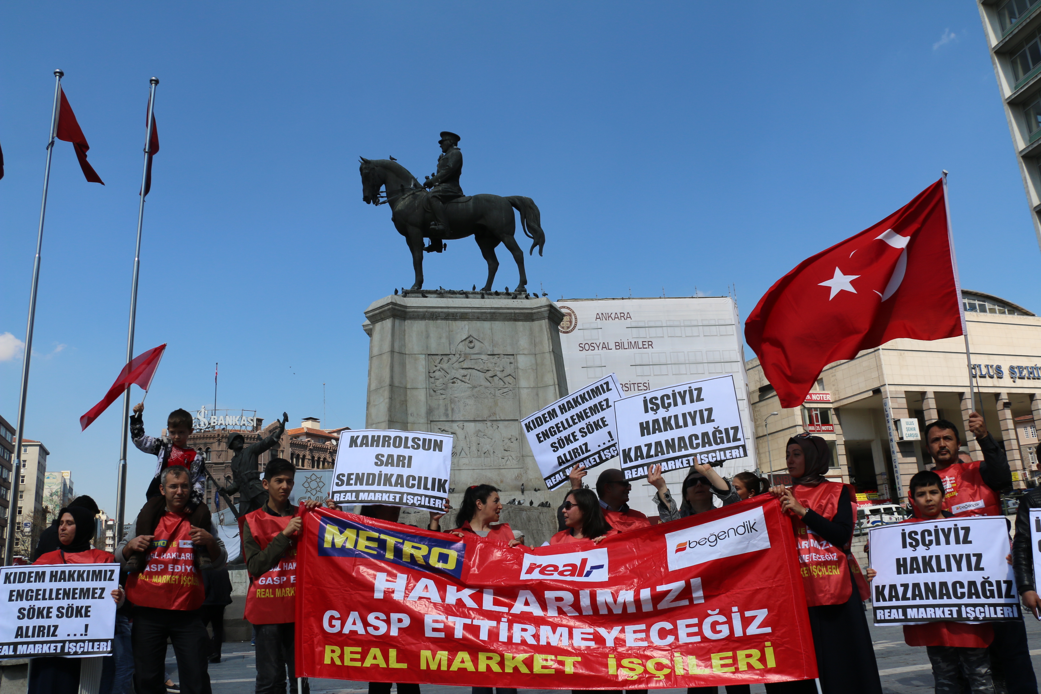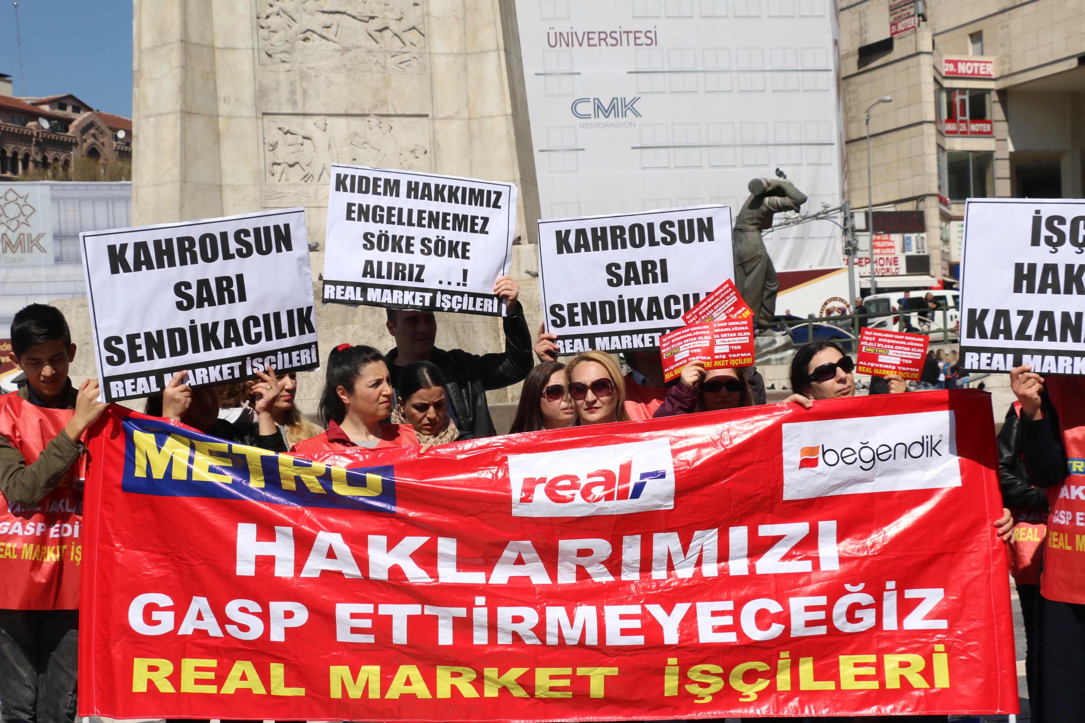Türk-İş’e bağlı Tez Koop İş üyesi Real marketler zinciri A.Ş işçileri kendilerine sahip çıkmadıkları gerekçesiyle üyesi oldukları Tez-Koop iş sendikasını hem de, Real Marketler zincirini protesto etmek için Ankara Ulus Meydanında bir araya geldiler. Meydanda toplanan işçiler “Haklarımızı gasp ettirmeyeceğiz” pankartı açarak, sık sık sloganlar attılar. Yapılan basın açıklamasına Disk Nakliyat İş Ankara bölge temsilcisi Bayram Karkın ve Çankaya Belediyesi Taşeron işçileri destek verdiler.