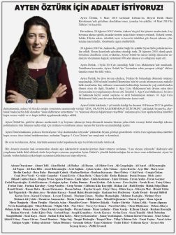 Ayten Öztürk’e yönelik hukuksuzluğun bir an önce sona erdirilmesini isteyen; aydınlar, gazeteciler, siyasetçiler ve sanatçılar yapılan imza kampanyasına destek oldu. İmza kampanyası ile Öztürk’ün , siyasi bir kararla verilen hukuka aykırı hapis cezasının kaldırılması talep edildi.