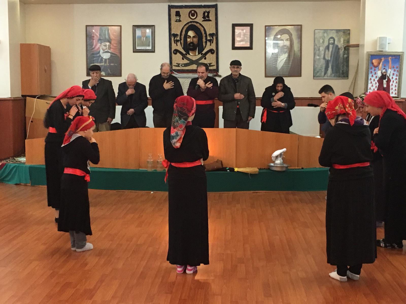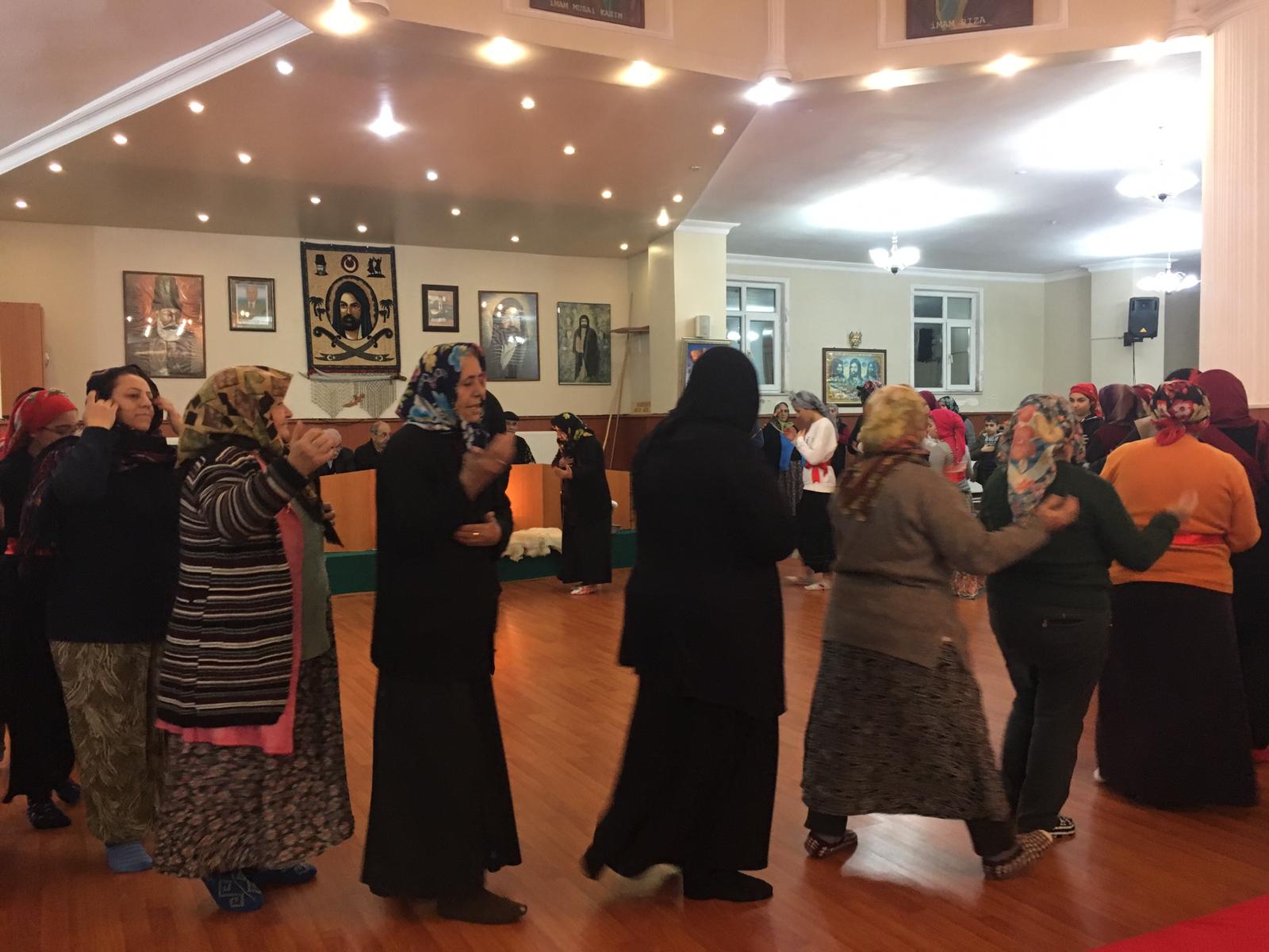 12 hizmet yürütülürken semaha duran canlara Sevim ana da katılarak semah döndü.