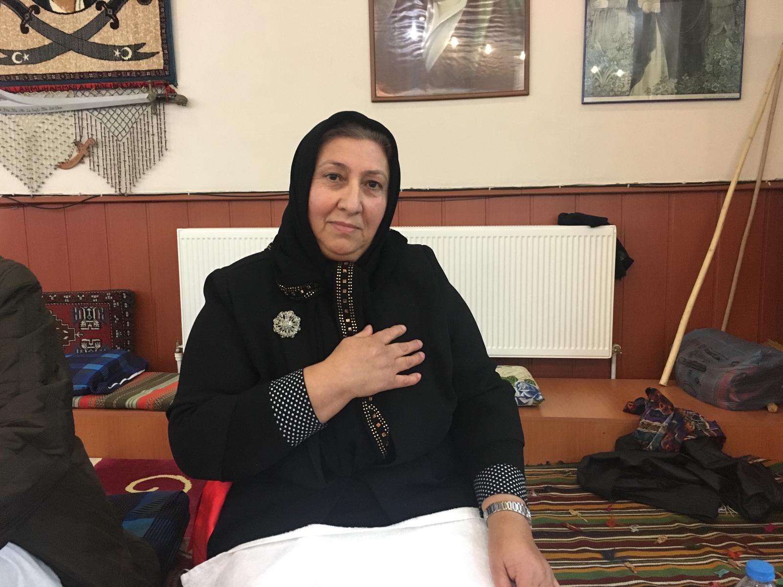 “Ben de bir anayım. Ben de Derviş Cemal ocağından bir anayım, Kureyşanlıyım. İki kere Kerbela’ya gittim. Peygamberlerin evlatlarına gittim yüz sürdüm. Allah herkese nasip etsin” diyerek kendisini tanıtıyor.