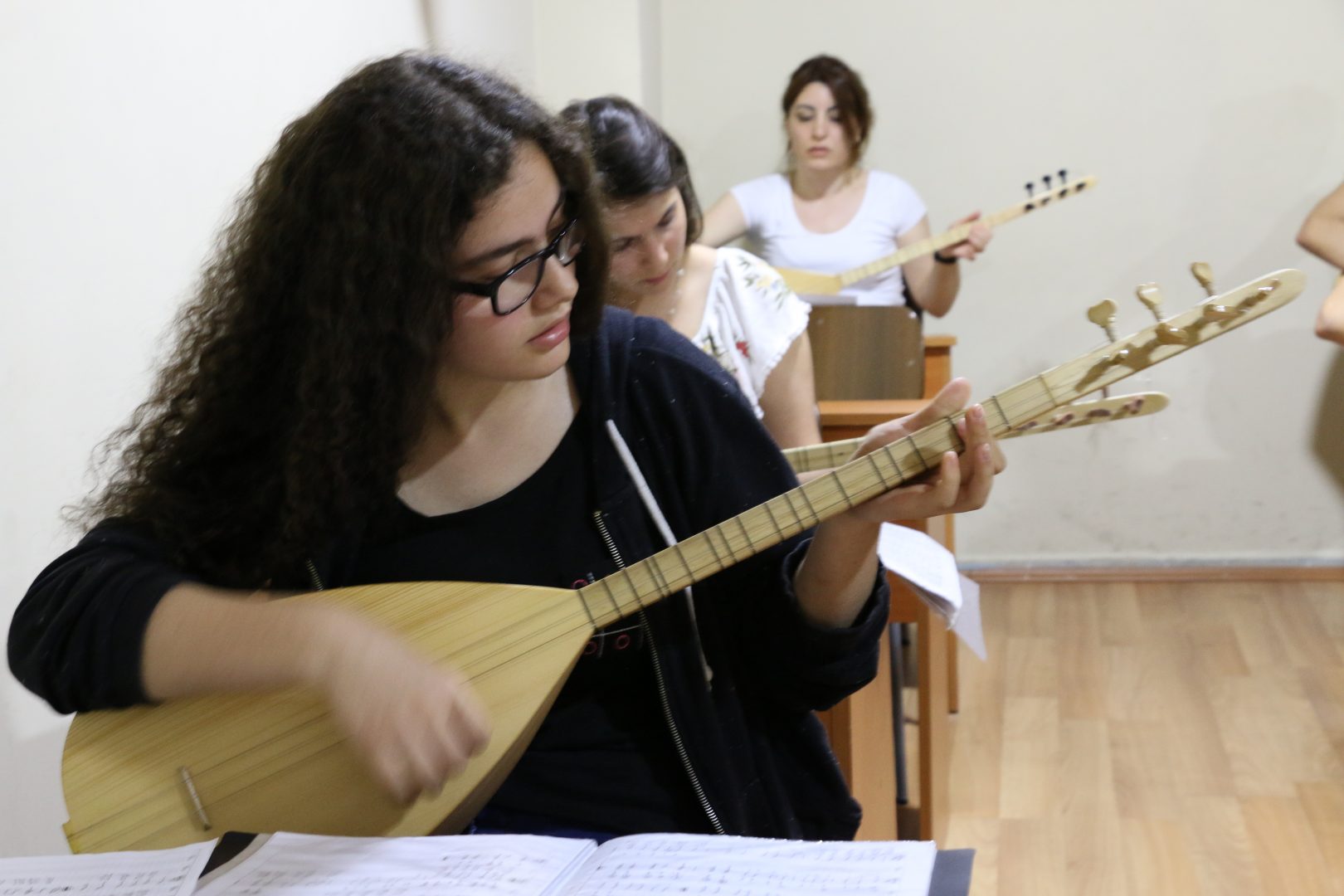 İstanbul’da bulunan Okmeydanı Cemevi’nde yıllardır bağlama kursu devam ediyor. Cemevinde bulunan bağlama kursu odasının kapısına geldiğimizde hep bir ağızdan ‘Gül yüzlü sevdiğim’ türküsüyle karşılaşıyoruz.