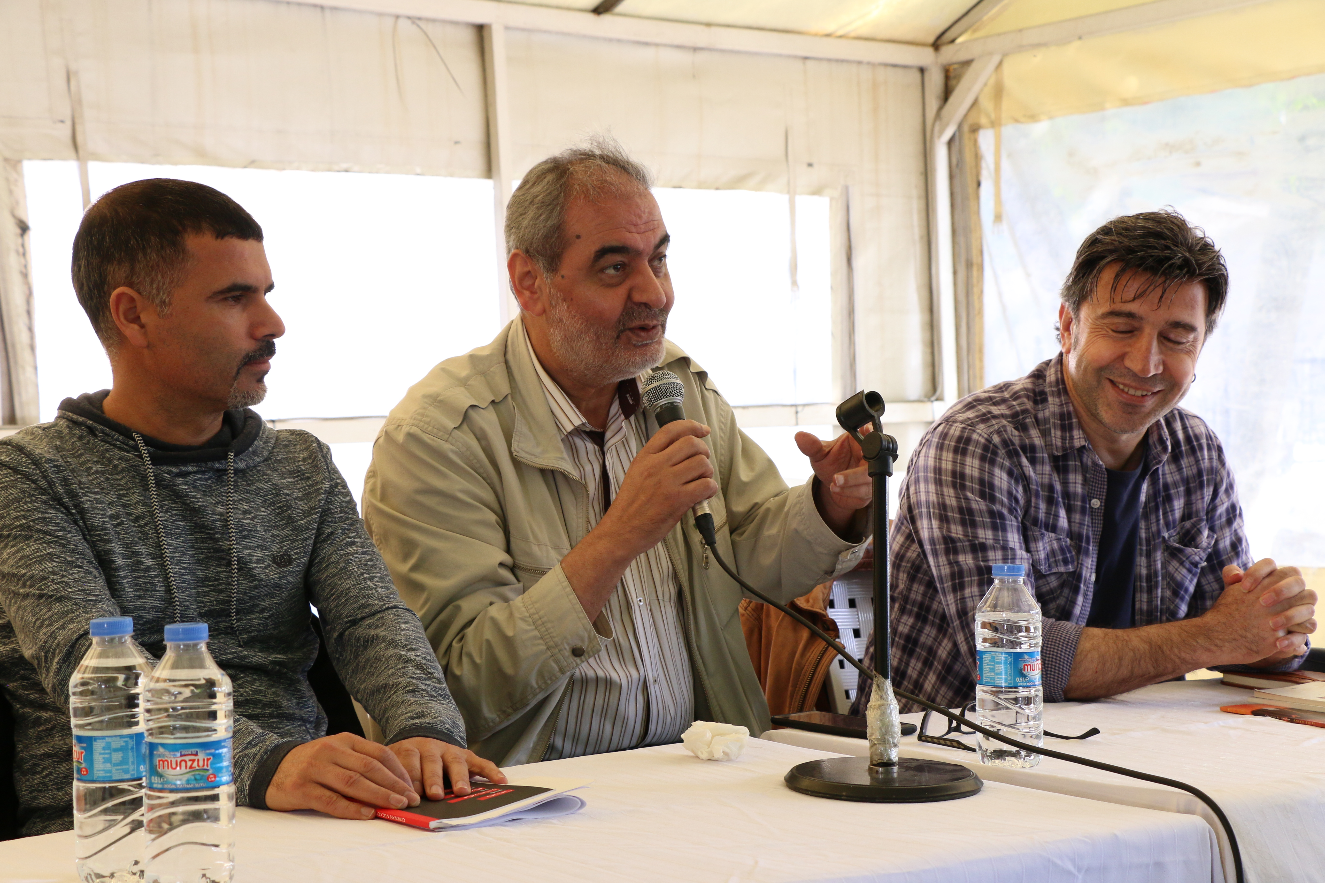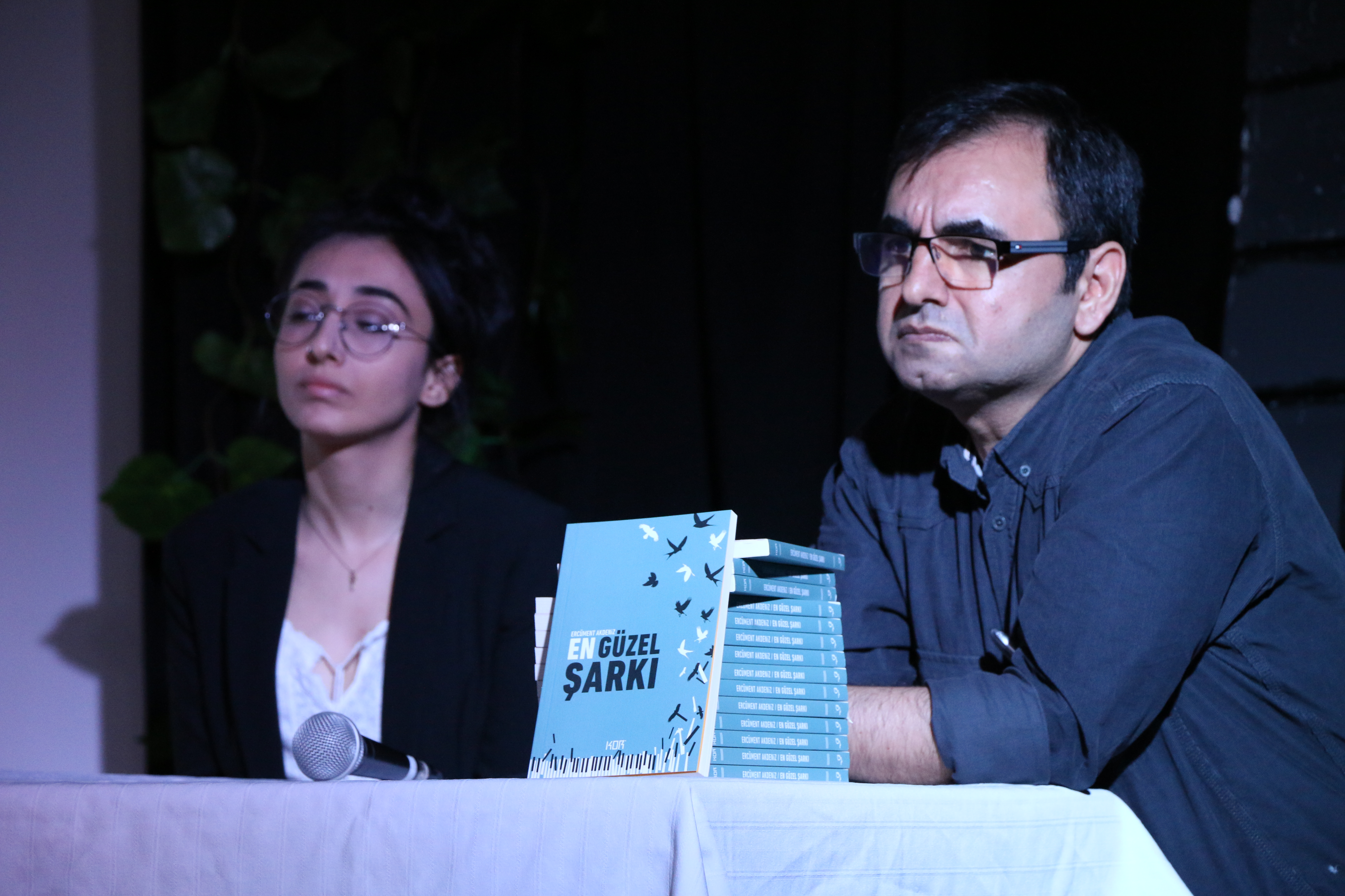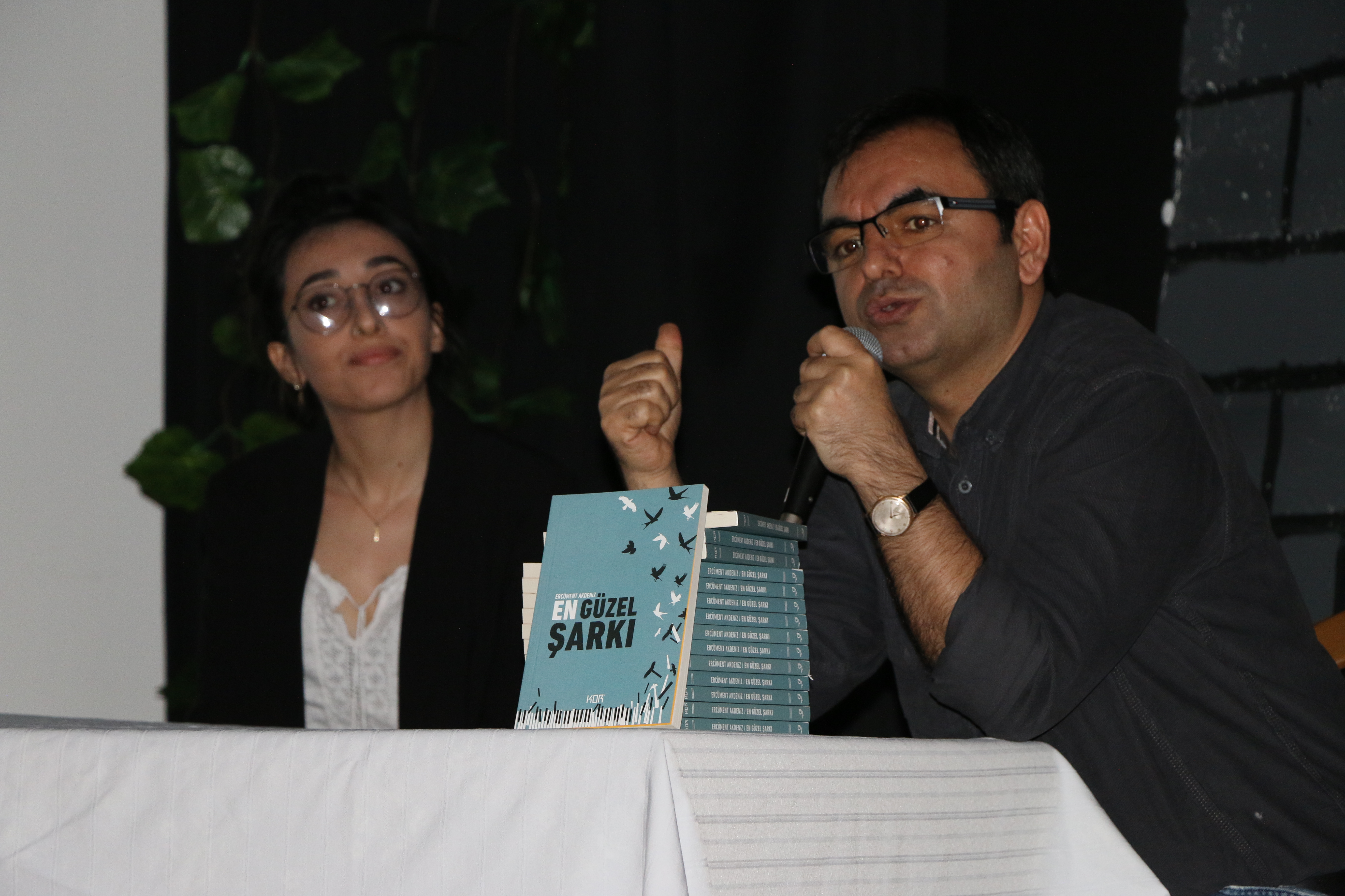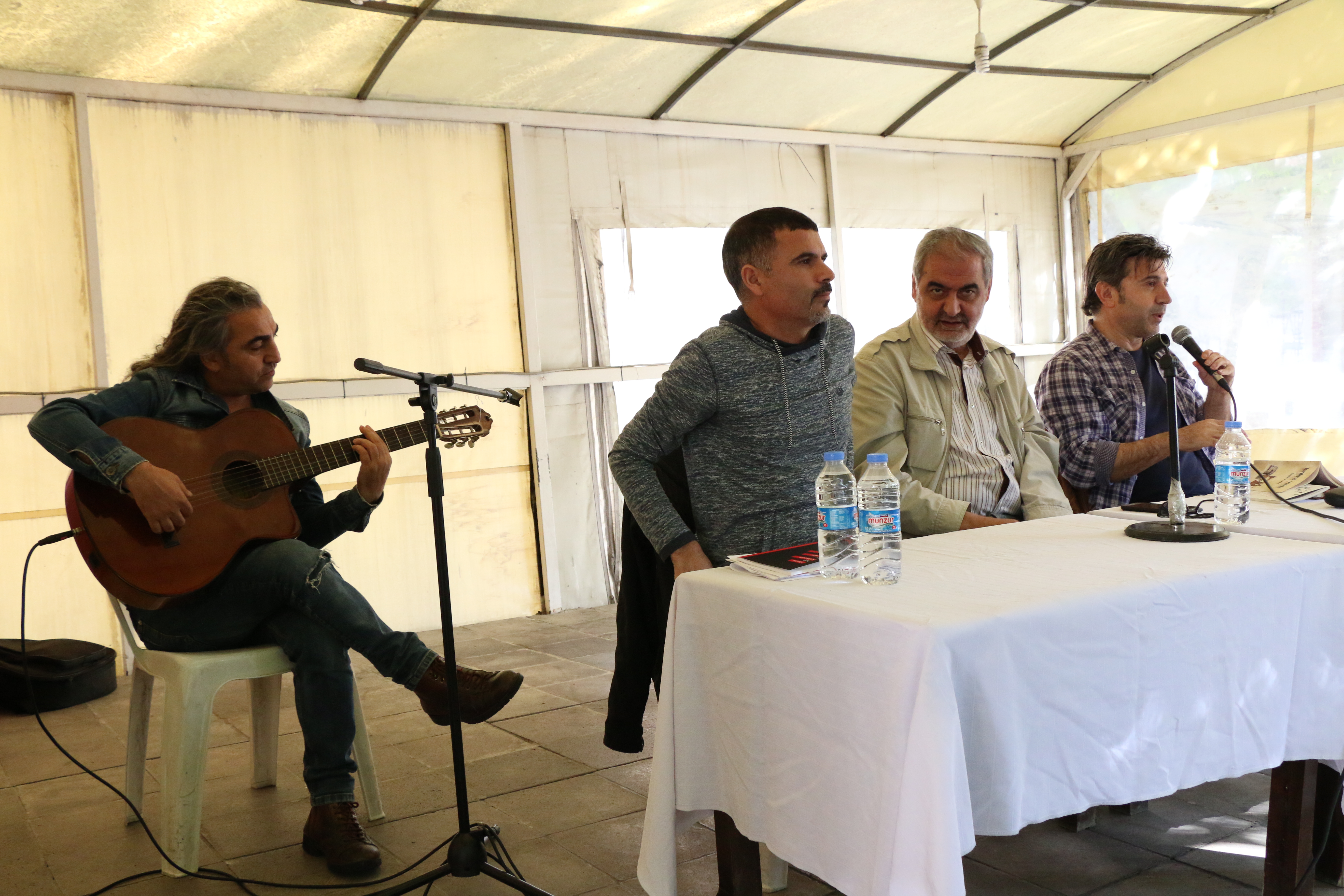 Dinletinin ardından, ‘En güzel şarkı kitap’ söyleşisi gerçekleşti. Kitap söyleşisinde, Ankara Katliamı’ndan yaralı kurtulan Günay Karakuş ve Yazar Ercüment Akdeniz iş cinayeti, çocuk işçiler ve emek sömürüsüne ilişkin görsellerle anlatım yaptı. Söyleşinin ardından da kitaplarını imzaladılar.