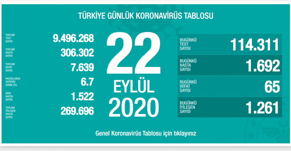 PİRHA – Koronavirüs salgını nedeniyle Türkiye’de 65 kişi daha yaşamını yitirdi, bin 692 yeni vaka tespit edildi.