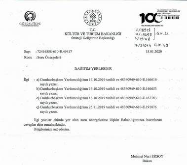 Kenanoğlu’nun ilgili soru önergesine yanıt geldi. Kültür ve Turizm Bakanı Mehmet Nuri Ersoy tarafından yanıtlanan önergede şunlar belirtildi :