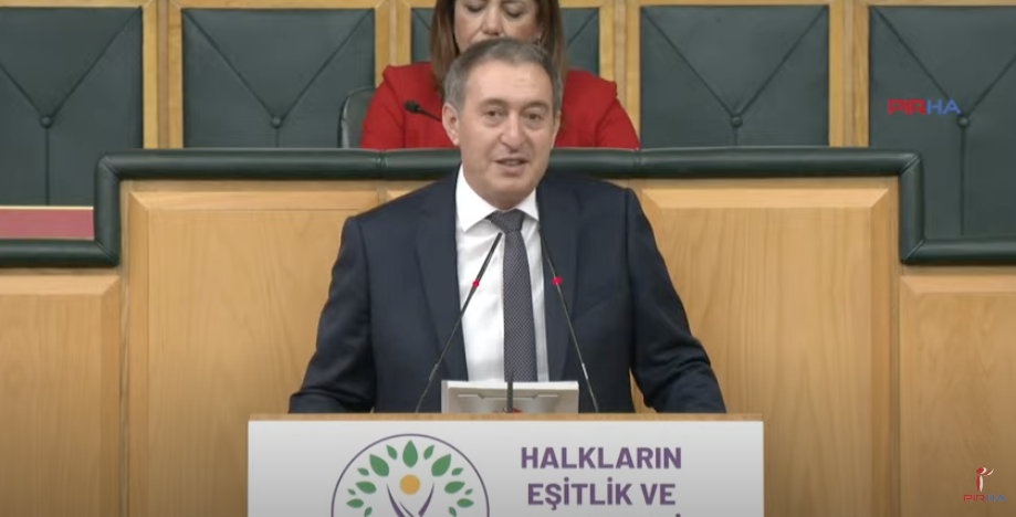 Türkiye’de bir taraftan barış kelimeleri ortalıkta dolaşıyor, tartışılıyor. Biz yokuz yine onlar tartışıyor. Bizi yok saydıklarında da yine bizim adımıza tartışıyorlar. Barış dedikleri zaman el uzattıkları zaman da DEM Parti tartışılıyor ama DEM Parti’li muhataplar maalesef o platformlarda yok. Bizim adımıza tartışmaya hüküm vermeye ahkam kesmeye devam eden bu anlayıştan gerçekten insan ne beklesin? Barış ancak bir Kürt bir Alevi bir Ermeni bir Süryani bir kadın bir yoksul kendini içinde hissederse barış olur. Aksine bir taraftan barış öte yandan kelepçe, açlık ve yoksullukla barış olmayacağını hepimiz öğrendik. Biz bu ülkenin kadim halklarından biriyiz. Bu üstenci dili, kendisini sahip bizi öteki kabul eden dili kabul etmiyoruz. Barış böyle gelmez. Kimmiş mekanın sahibi: mekanın sahibi emekçilerdir, üretenlerdir, ezilenlerdir. Çanakkale’de yaşamını yitirenlerdir. Malazgirt’te kapıları açarak sizlerin Anadolu’ya girmenizi sağlayanlardır. Bu topraklarda sizden önce Pir Sultanlar, Hacı Bektaşlar, Seyit Rızalar vardı.”