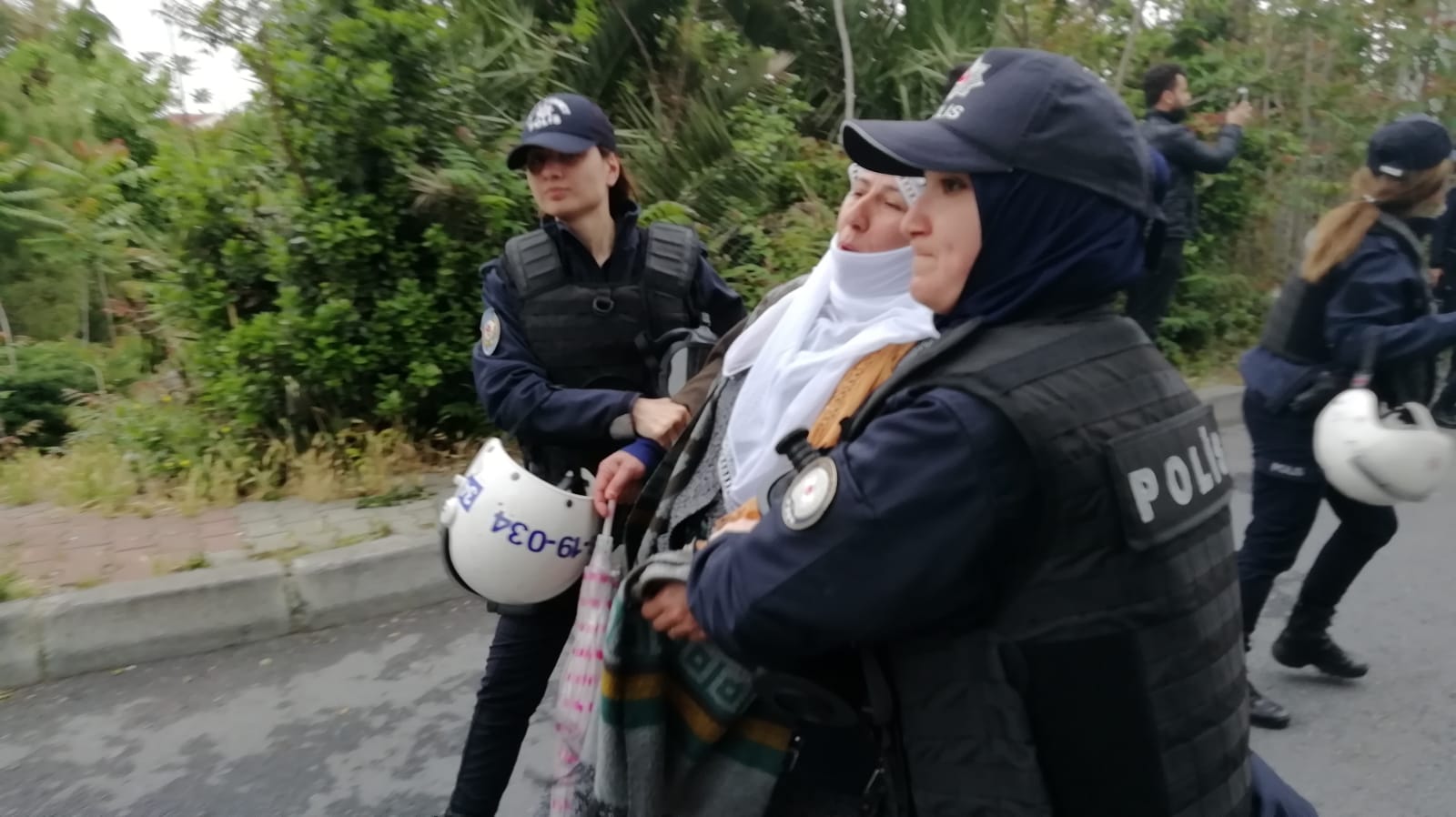Bu sırada polis olay yerinde bulunan herkesin GBT’sine baktı. Polis ayrıca haber takibi yapan gazetecilerin de çekim yapmasına engel oldu. Polis gazetecilere, “Siz gazeteci değilsiniz burada çekim yapamazsınız” dedi. Gazeteciler haber takibi yaptıklarını belirterek çekime devam ettiği sırada polis amiri, gazetecilerin çekim yapmasını engelleyerek, “Siz beni teşhir ediyorsunuz. Benim yüzümü çekiyorsunuz. Günlerdir yüzüm çekilerek teşhir ediliyorum” iddiasında bulundu.
