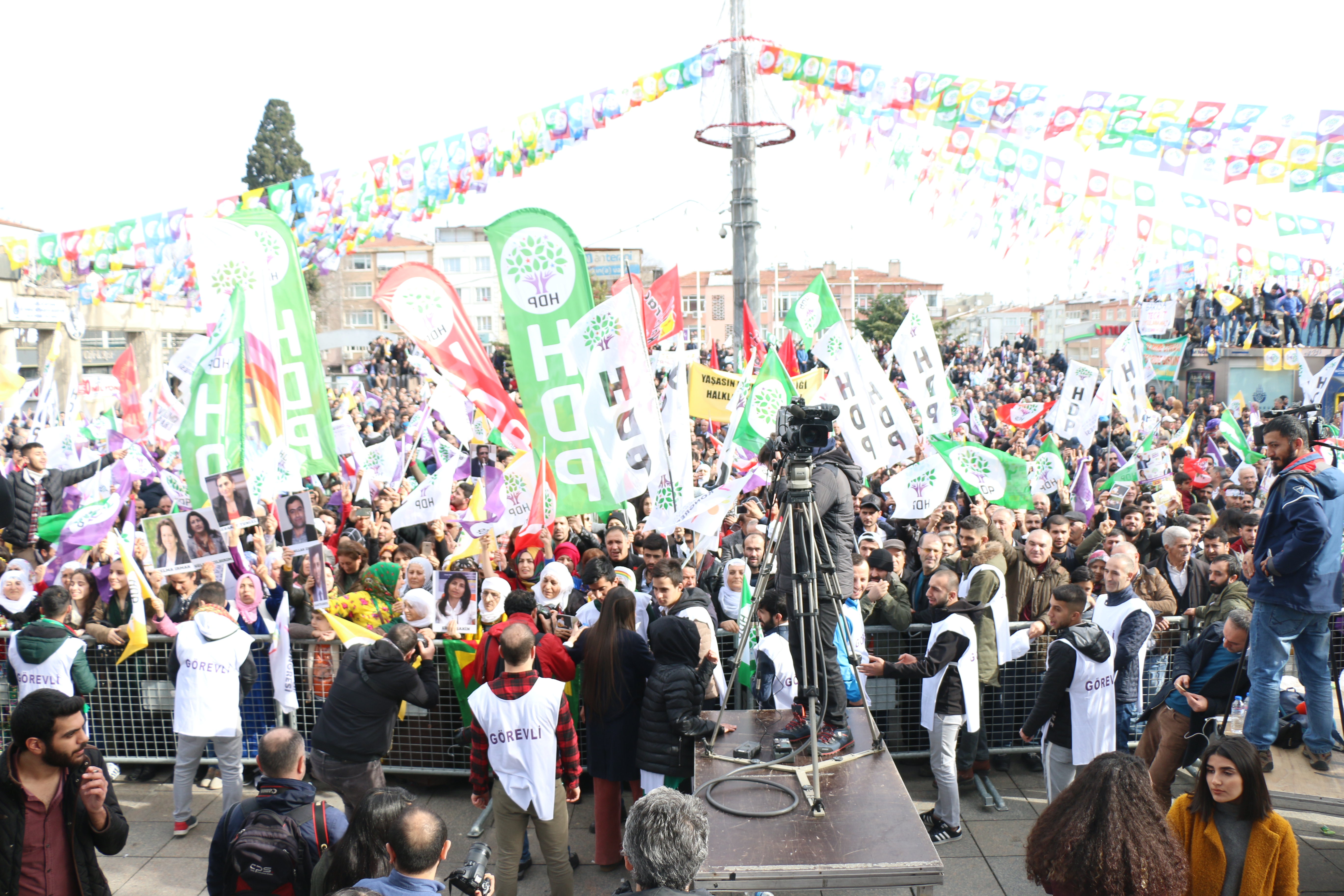 Yerellerde halkımızı iktidara taşıyacağız. Sadece kayyumları geri almakla kalmayacağız, yerel demokrasiyi inşa edeceğiz. Yöneten biz üreten biz olacağız. Kayyumları süpürüp atmak yetmez. Bu AKP-MHP bloğunu Türkiye’nin her yerinde yok edeceğiz. Doğa talanına son vermek için mücadele edeceğiz. Bunu hep birlikte başaracağız. Yerellerde iktidara gelmek demek barışın yolunu açmak demek, tecridi kırmak demek. Sürgündeki tüm yoldaşlarımıza kavuşmak demek, bir başka Türkiye’yi hep birlikte var etmek demek. Bu rejimden bu ülkeyi kurtarmak için 31 Mart çok önemlidir. Her şeyi tekleştiren bu zihniyete karşı tüm farklılıklarımızla birlikte buradayız, varız var olacağız demektir. Mücadelemizi kararlılıkla sürdüreceğiz. Bu mücadeleye herkesi davet ediyoruz.