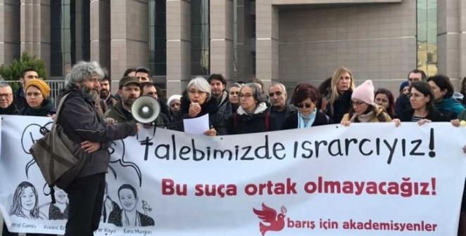 Bölge’deki sokağa çıkma yasakları sırasında yaşanan hak ihlallerinin ve çatışmalı sürecin sona ermesi için Barış Bildirisini imzalayan 150’yi aşkın akademisyen hakkında açılan davalar kapsamında yapılan yargılamalara devam edildi. Barışı savundukları için Terörle Mücadele Kanunu 7//2 maddesi gereğince 7 buçuk yıl hapis istemiyle yargılanan 4 akademisyen Çağlayan’daki İstanbul 36. Ağır Ceza Mahkemesi’nde hakim karşısına çıktı.