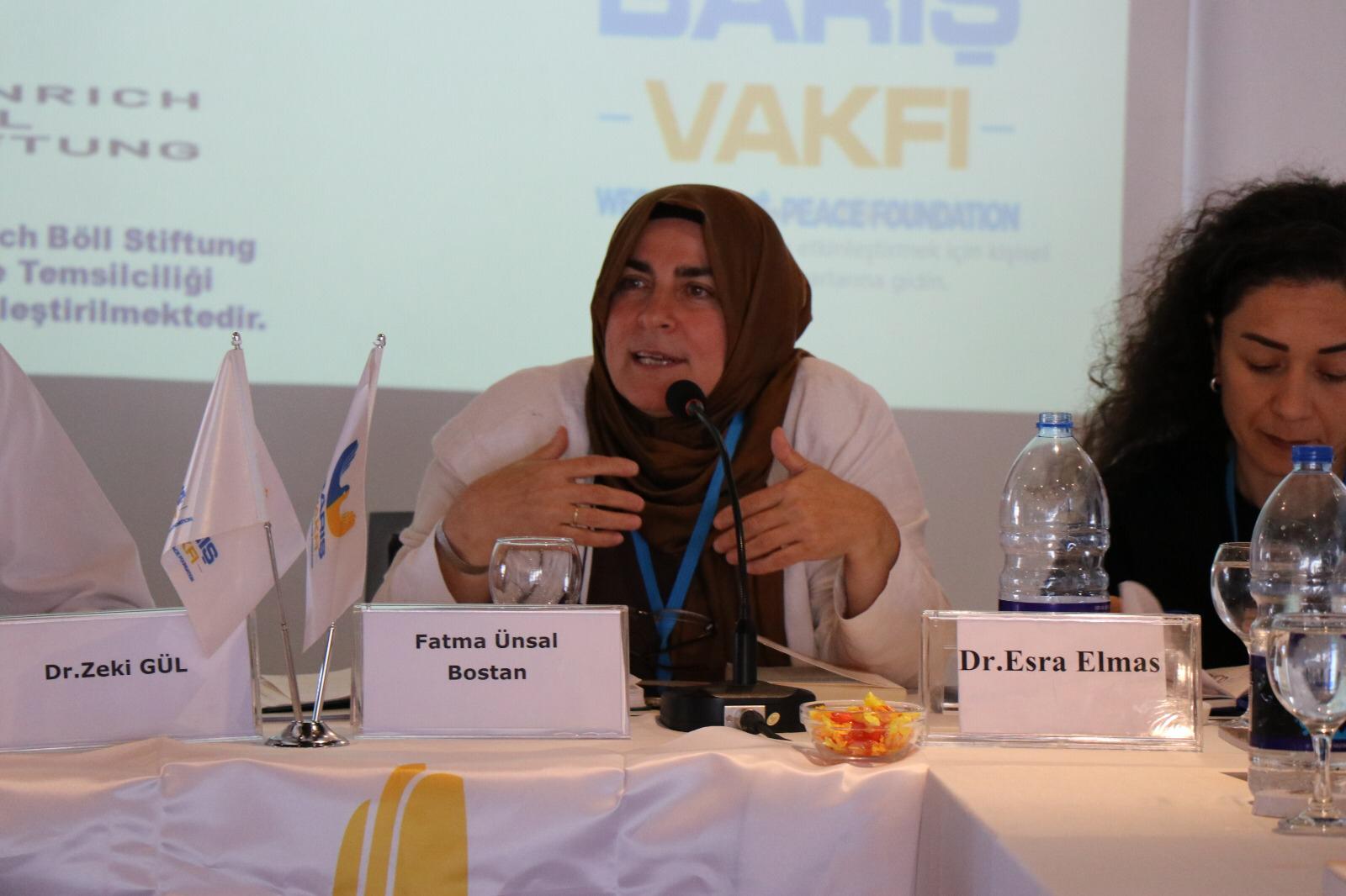 Özellikle 1990’lı yıllarda yönetim kavramının yönetişim kavramıyla değiştirildiğini söyleyen Barış Vakfı Yönetim Kurulu üyesi ve Prof. Dr Fatma Ünsal Bostan, yöneten ve yönetilen değil karşılıklı yönetmenin geliştiğini söyledi. Birleşmiş Milletler (BM) 1325 sayılı Güvenlik Konseyi Kararında kadınların barış sürecine aktif katılımının söz konusu olduğunu söyleyen Bostan, Türkiye’de CEDAW’ın (Kadınlara Karşı Her Türlü Ayrımcılığın Önlenmesi Sözleşmesi) bilinmesine rağmen 1325 sayılı kararın bilinmediğini söyledi. Bostan, “Kuzey İrlanda barış sürecinde görüşme şansımız oldu. Katılan herkesin bu başarıda Hayırlı Cuma Anlaşmasının imzalanmasında en çok Kadın Koalisyonu Partisi’nin katkısı oldu. Gerçek bir parti olarak anlamamıştık. Seçimden 6 hafta önce kurulmuş ve kendi seslerini duyuramadıkları için seçimlere girmişlerdi. Kadınlar başka partilere de üye olabiliyordu. Hem Katolik hem Protestanlar vardı. Çatışma din kökenli olmasa da mezhep farklılığı çatışmayı besleyen bir unsurdu. Bu aşamada Kadın Partisi olmasaydı anlaşma imzalanamazdı” dedi.
