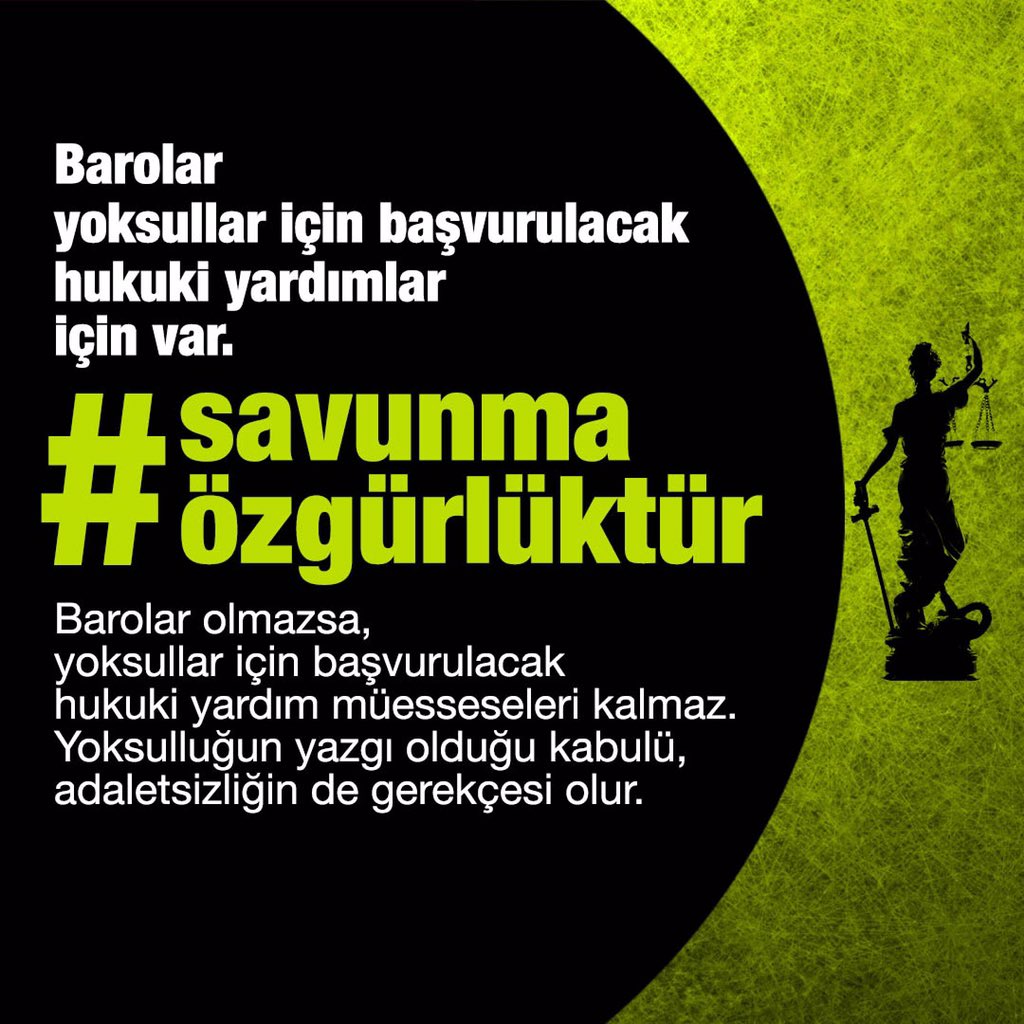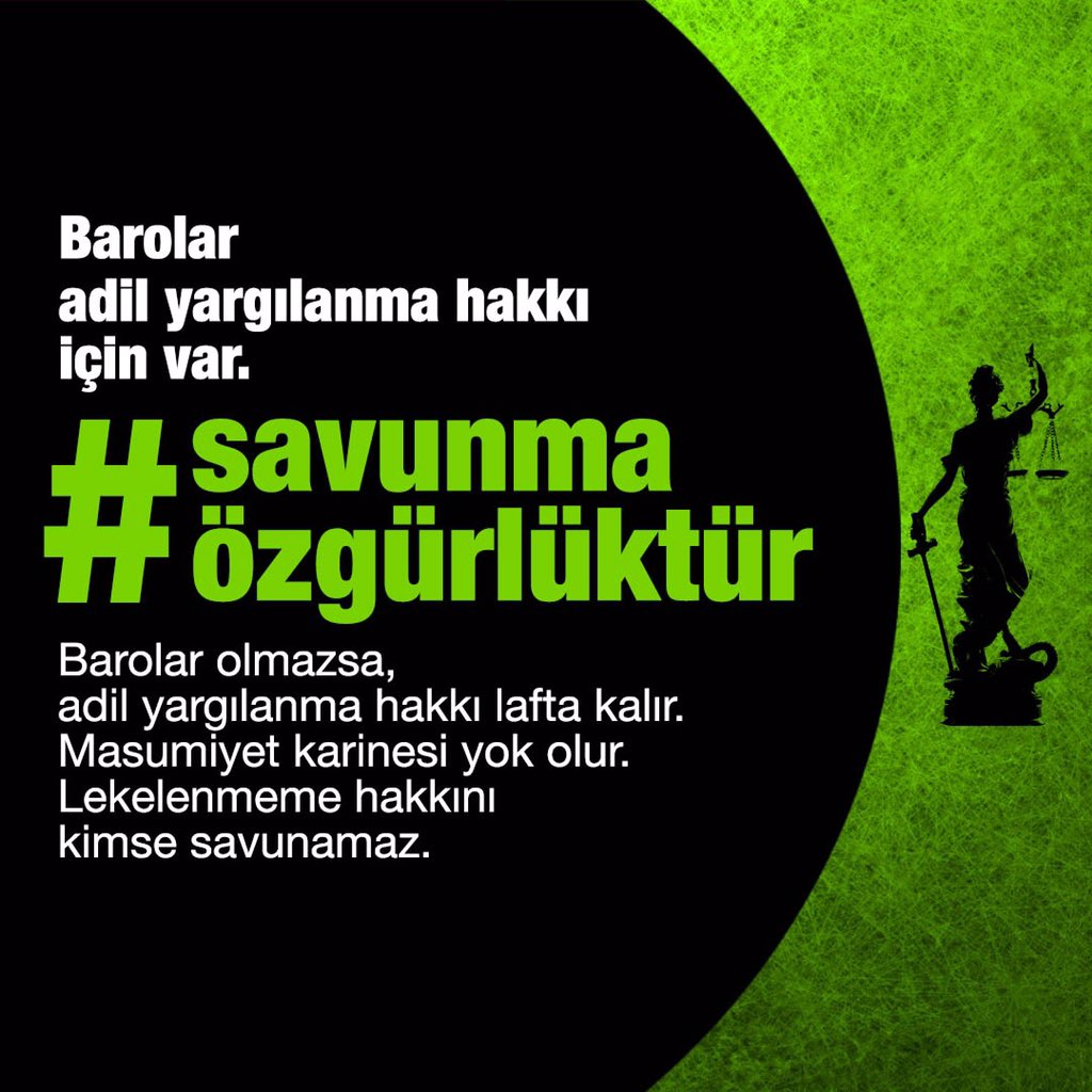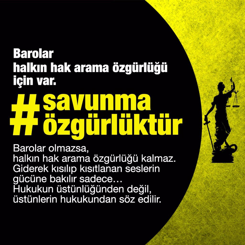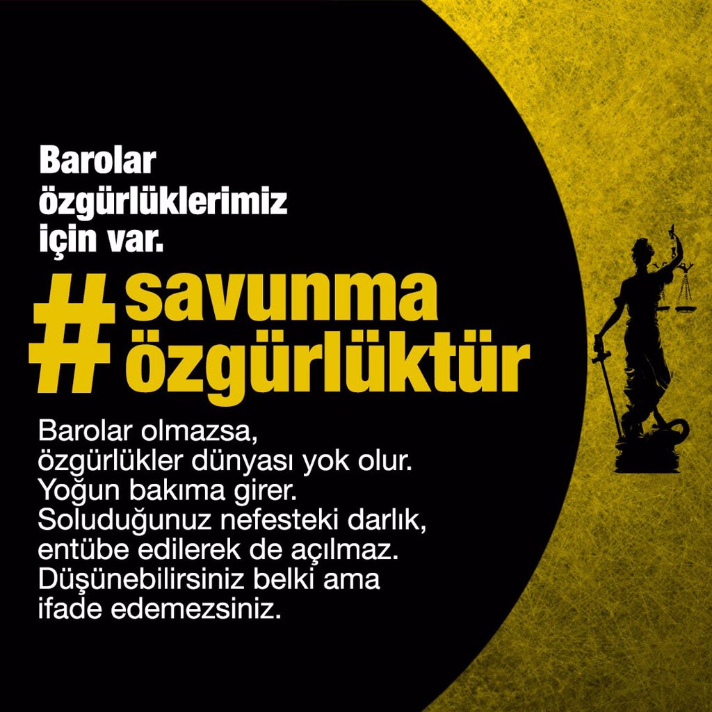53 baro başkanı da dün akşam saat 21:00’de twitter ve diğer sosyal medya hesaplarından #SavunmaÖzgürlüktür başlığı altında çok sayıda tweet atarak seslerini duyurmaya çalıştılar.