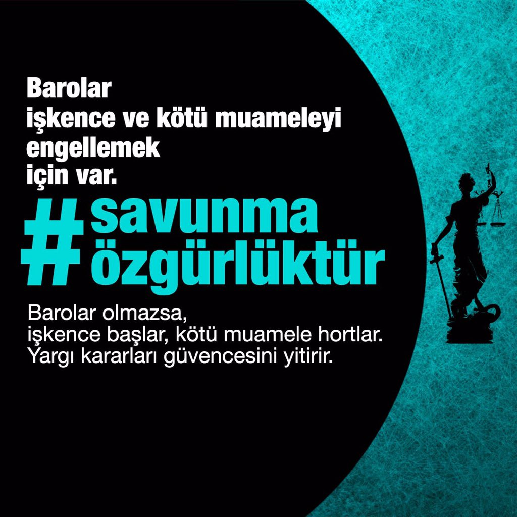 Baro başkanları ayrıca “Barolar adil yargılanma hakkı için var”, “Barolar insan hakları ihlallerinin karşısında durmak için var”, “Barolar yargı bağımsızlığı için var”, Barolar işkence ve kötü muameleyi engellemek için var” şeklinde yazılı görselleri de sosyal medyada paylaştılar.