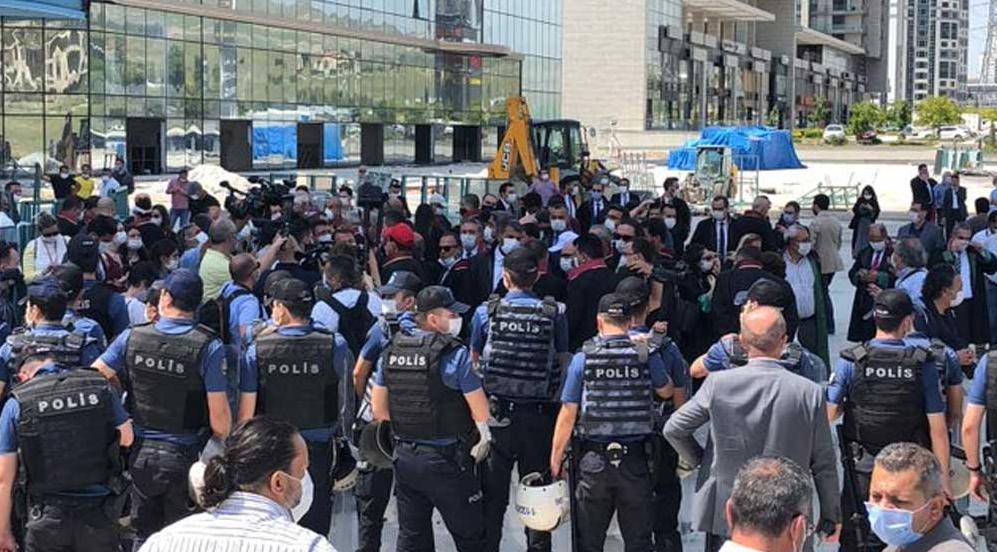 Polis yoğunluğunun olduğu Eskişehir yolunda baroların karşılama noktasına ulaşması ile birlikte açıklama yapılması beklenirken, diğer baro başkanları ve üyelerinin önü karşılama noktasına kısa bir mesafe kala polisler tarafından kesildi. Polis amirleri “kamu düzeni bozulduğu” gerekçesiyle yürüyüşe izin verilmeyeceğini belirtti.