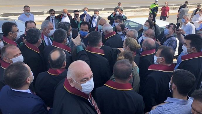 Baro üyelerinin ellerinde “Baro yoksa adalet yok”, “Savunmadan elini çek”, “Bağımsız yargı”, “Savunma yürüyor “, “Savunmaya özgürlük” ve “Baroma dokunma” dövizleri yer aldı.