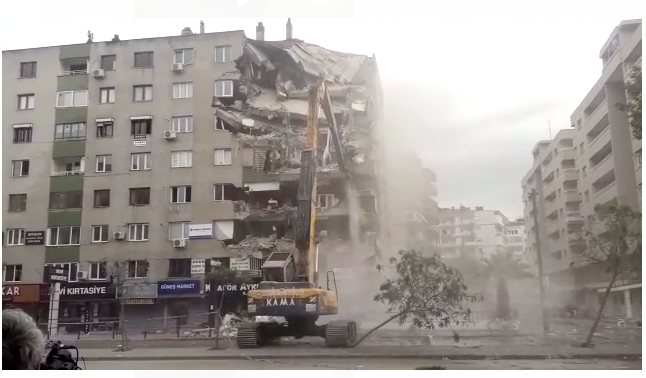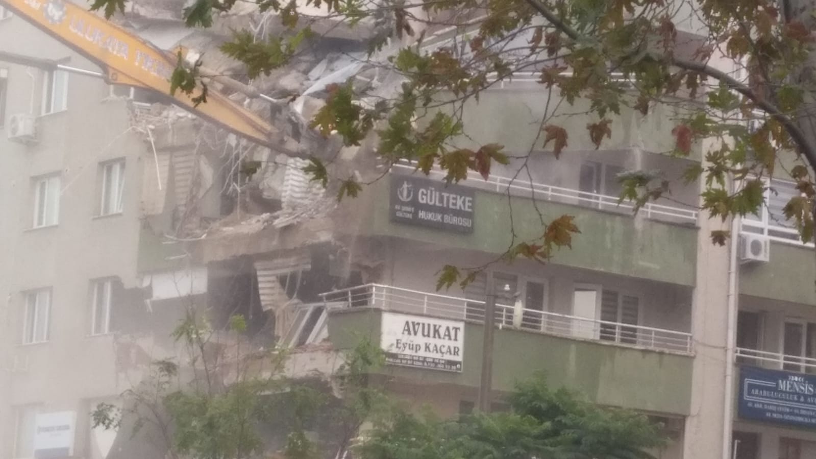 Hasar gören binalardan biri olan Bayraklı ilçesi Manavkuyu semtinde, Haydar Aliyev Caddesi üzerinde bulunan Canbazoğlu Apartmanı’nın yıkımına başlandı.