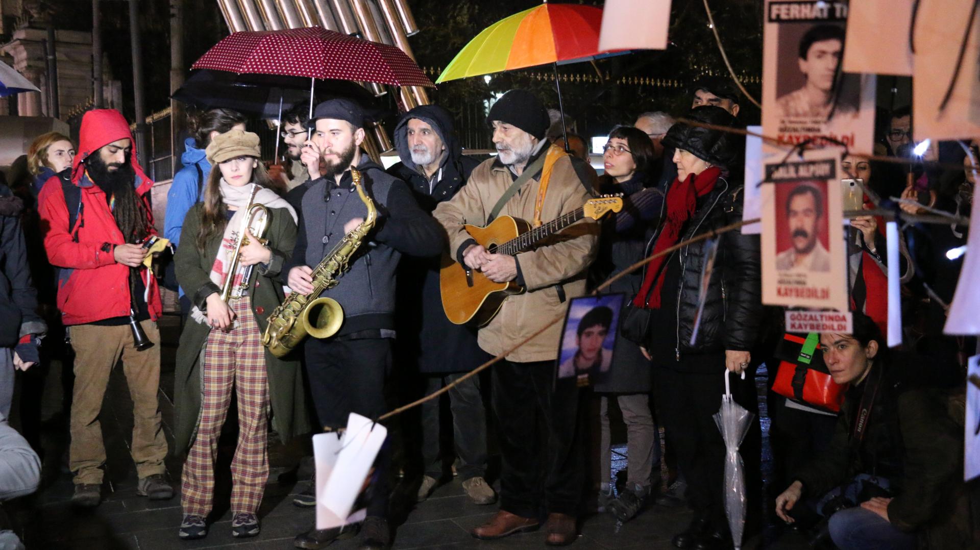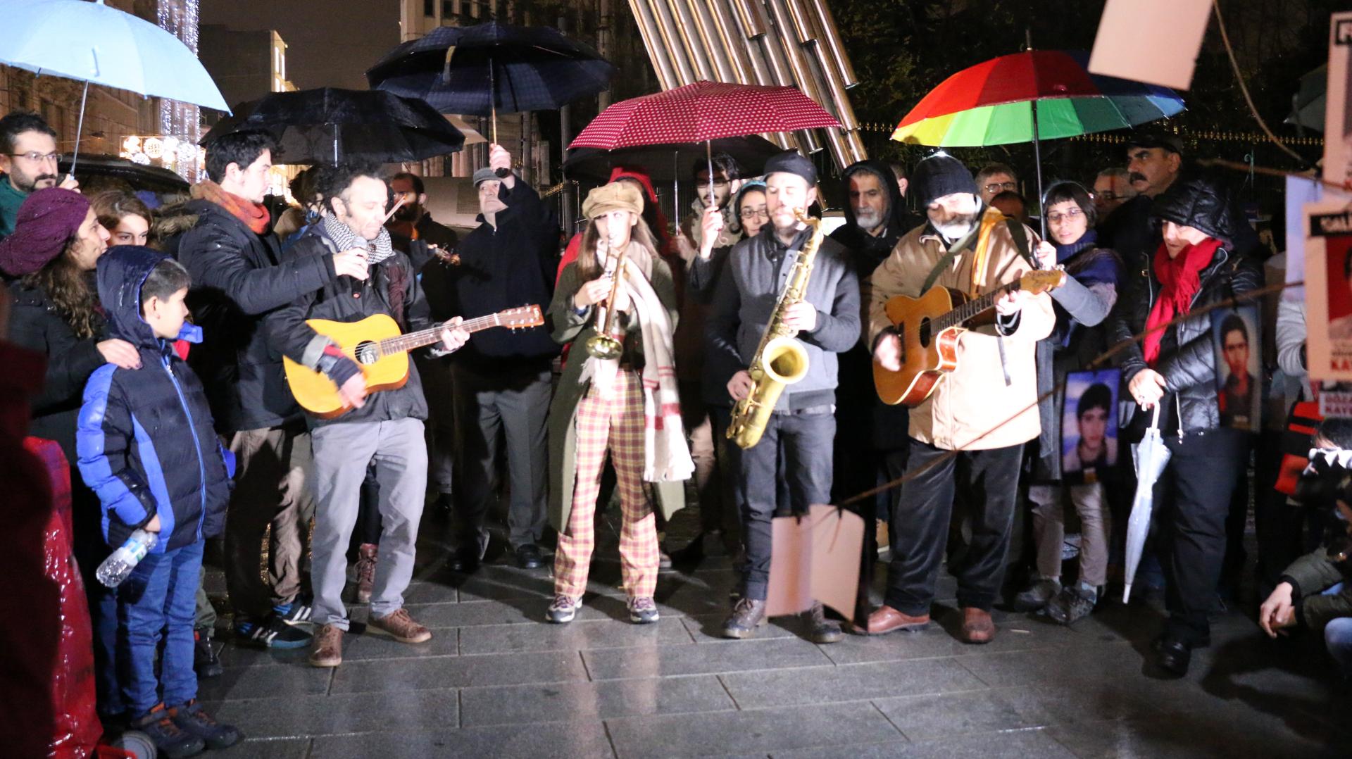 1995’ten bu yana Galatasaray Meydanı’nda oturan Cumartesi Anneleri, kayıplarının fotoğraflarının asılı bulunduğu yılbaşı ağacı ve yaktıkları mumlarla, “Yeni yılda dileğimiz; kayıplarımızı bulmak!” dedi. 22 yıldır Galatasaray Meydanı’nda kayıplarını arayan Cumartesi Anneleri’ne Bandistan müzik gurubu da destek vererek, ‘Benim Annem Cumartesi’ şarkısını seslendirdi.