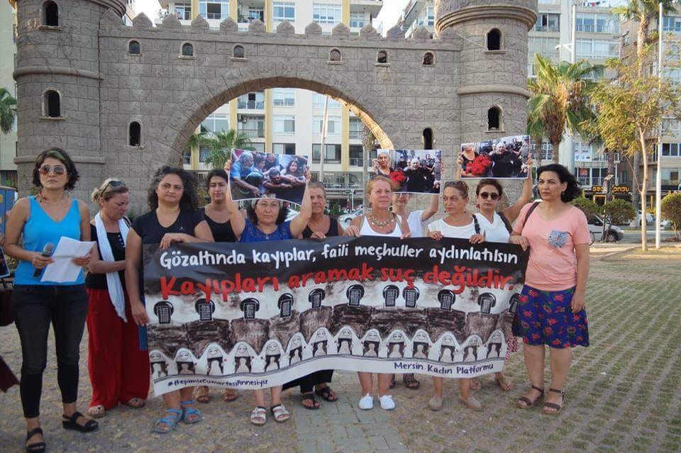 Mersin Kadın Platformu Cumartesi Anneleri’ne destek amacıyla basın açıklaması gerçekleşti. Mersin Kadın Platformu adına konuşan Elif Yaşar, Türkiye’de 90’lı yıllardan beri özellikle, Kürt illerinde süren savaşta ortaya çıkan kayıplar sorununun insan hakları savunucuları tarafından gündemde tutulduğunu ve çözülmek istendiğini vurguladı.
