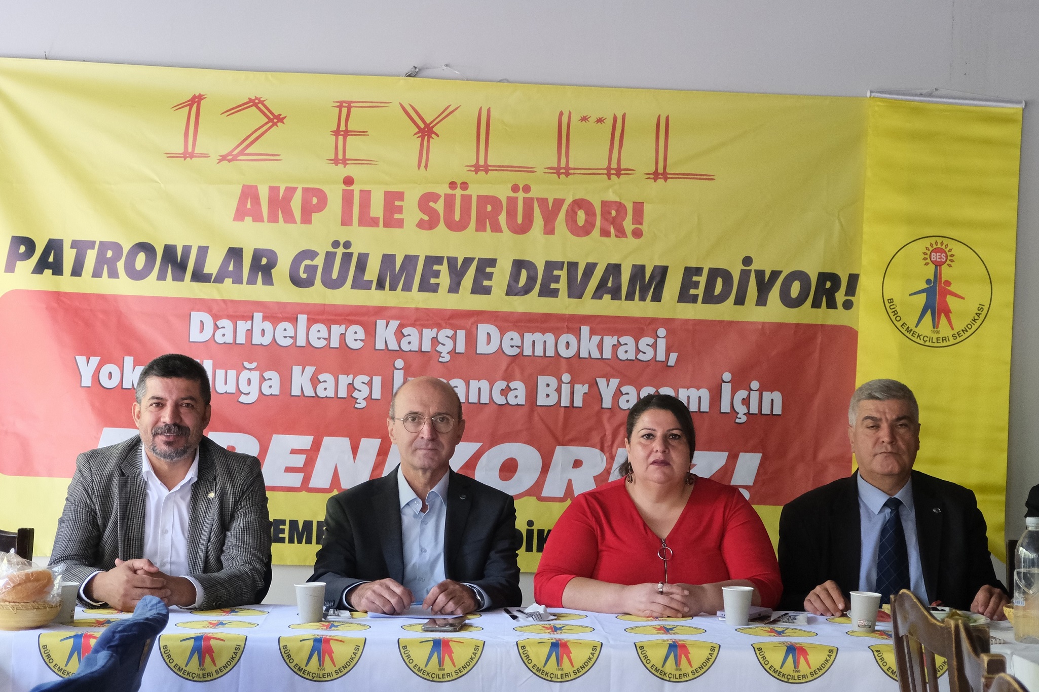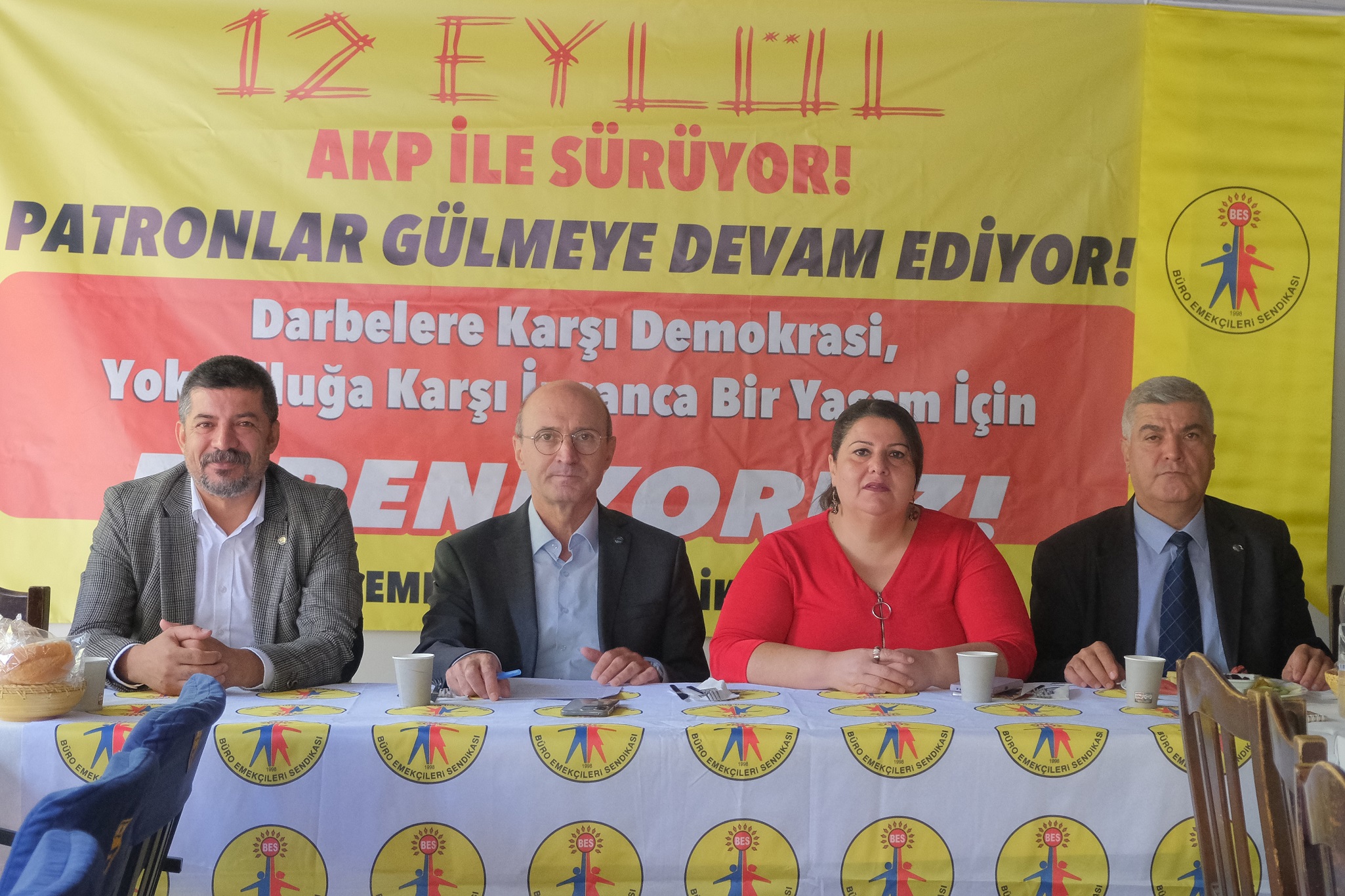 12 Eylül Askeri Darbesinin 43. yıl dönümü olduğunu hatırlatan BES Genel Başkanı Bahadır Berdicioğlu, darbenin siyasal ve ekonomik sonuçlarının halen devam ettiğini söyledi. Berdicioğlu şunları ekledi: