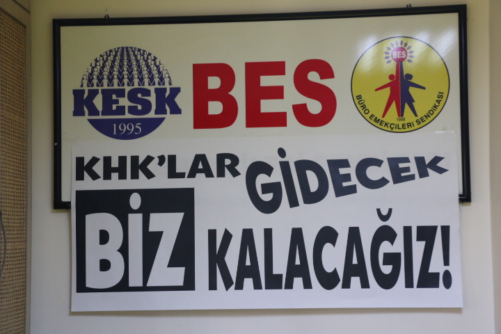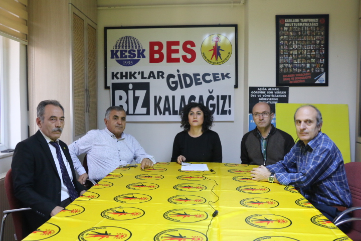 “22 Kasım 2016 tarihinde yayınlanan KHK, doğrudan sendika yönetici ve üyelerimizi hedef almış, Genel Başkanımız başta olmak üzere İstanbul 1, Ankara 1 ve 2, Çorum, Mersin, Dersim, Hakkari ve Mardin Şube Başkanlarımız, Kırşehir, Adıyaman, Malatya ve Muş İl Temsilcilerimizin içinde bulunduğu 98 üyemiz haksız ve hukuksuz olarak işten atılmışlardır.”