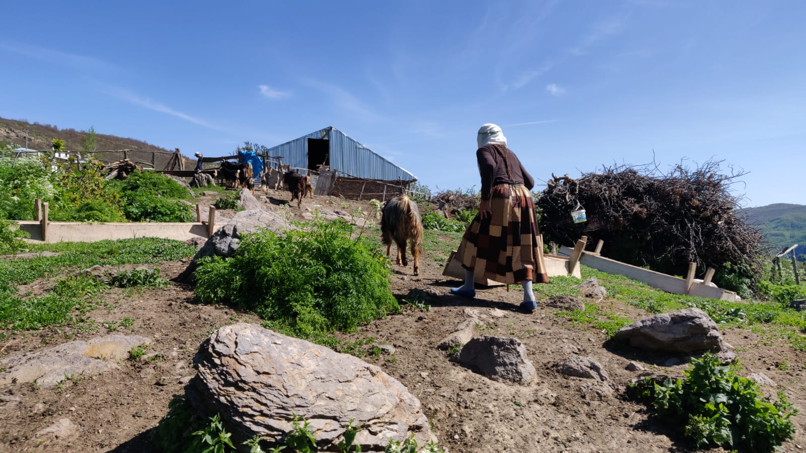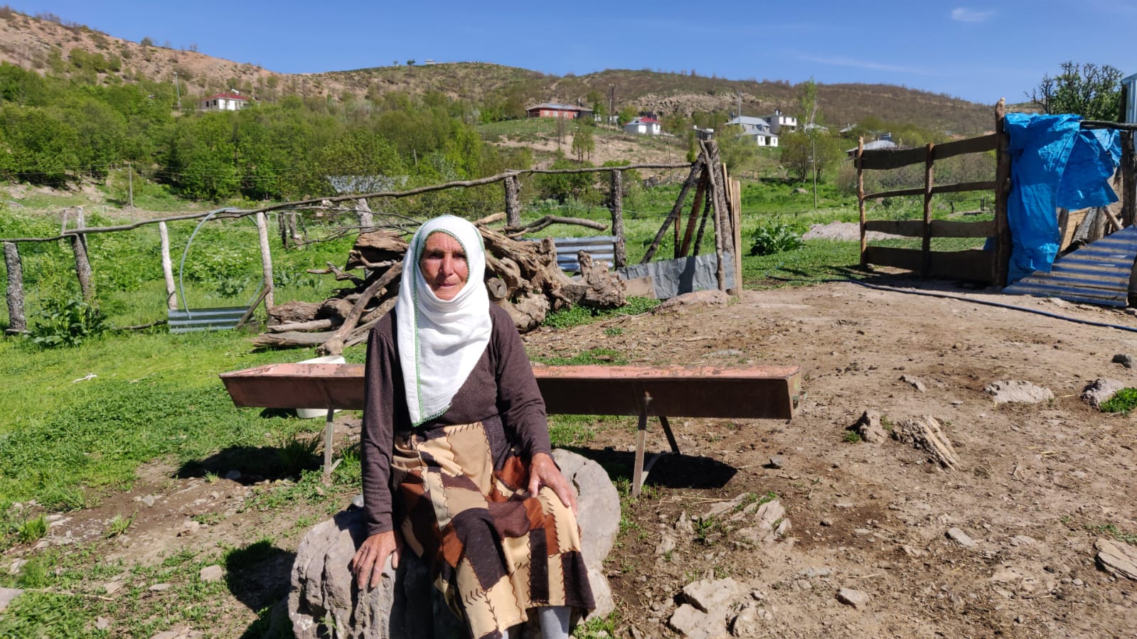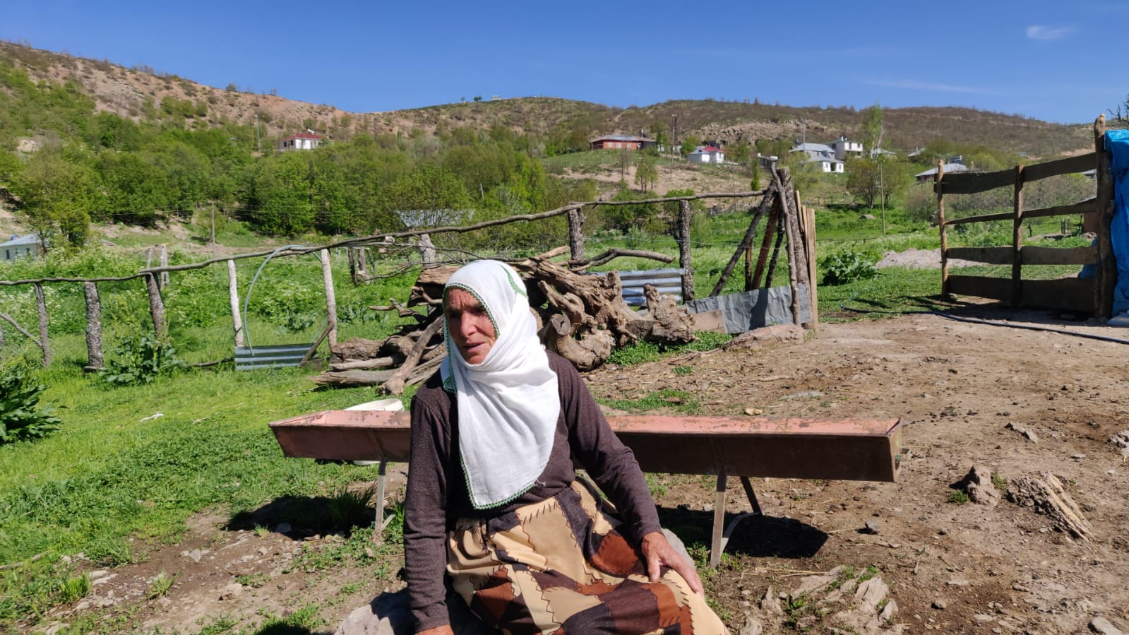 Ben de bu yıl ‘döküldüm’ diyerek yıprandığını belirtiyor. Oğlakları ve hasta keçileri evin çevresinde otlattığını belirtiyor. Aslında benim hayvana bakma zamanım değil ama ne yapayım kimse yok mecbur bakıyorum. Gelinim kızıyla birlikte keçilerin önüne gitmişler. Ben de böyle evin çevresindeki hayvanlara bakıyorum diyor.