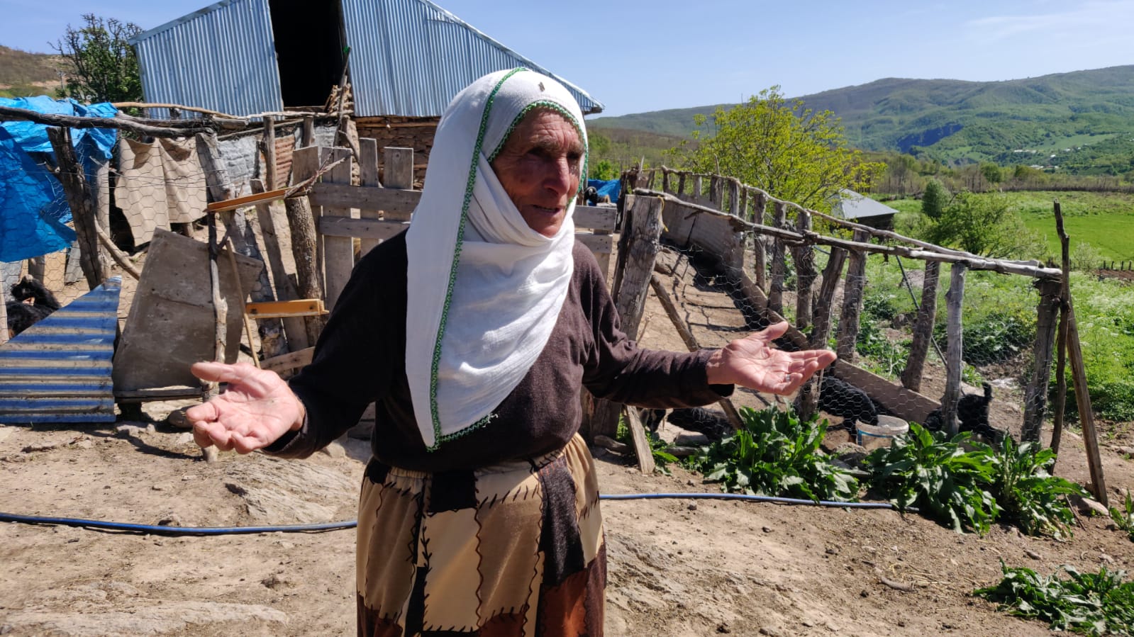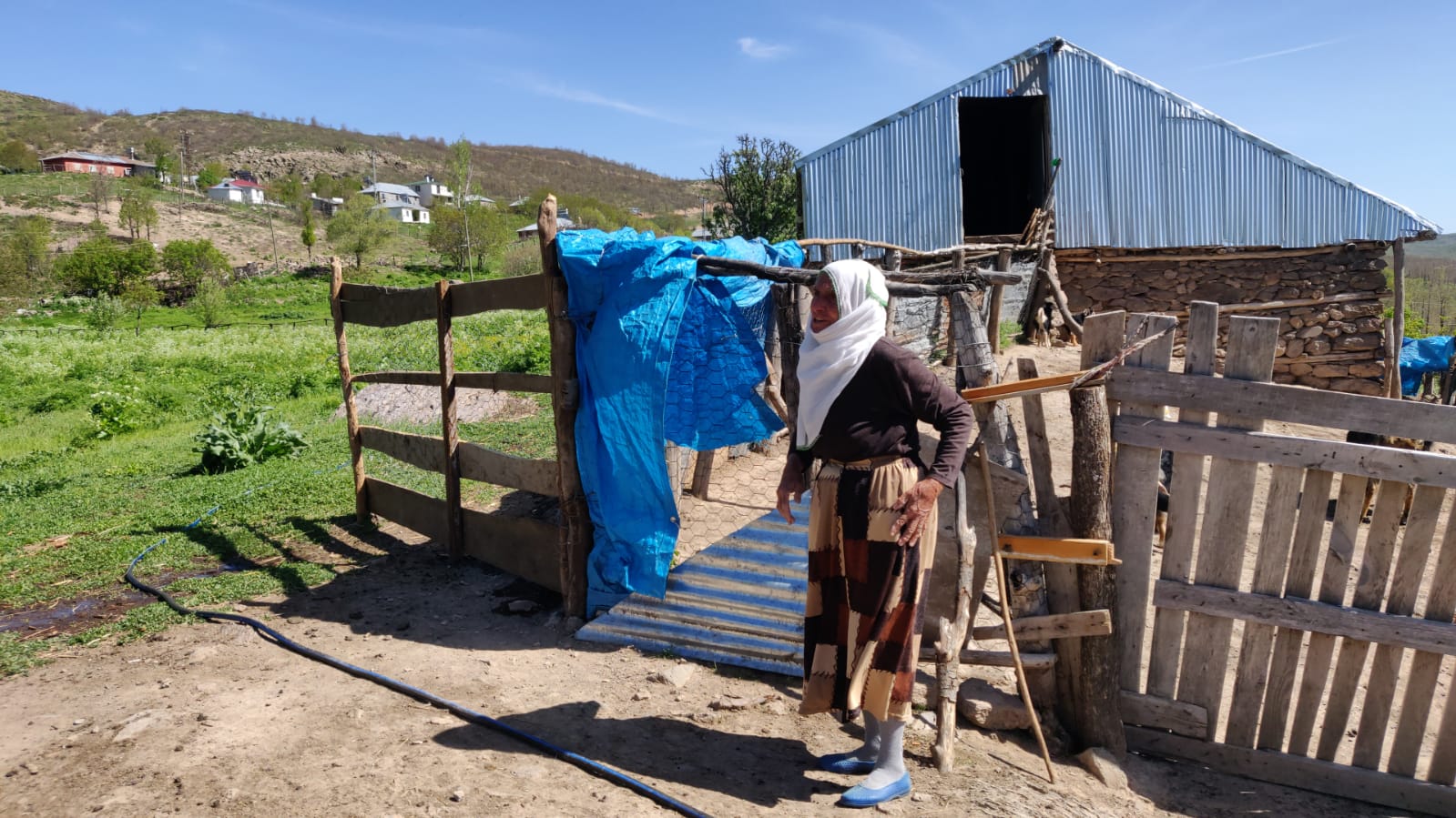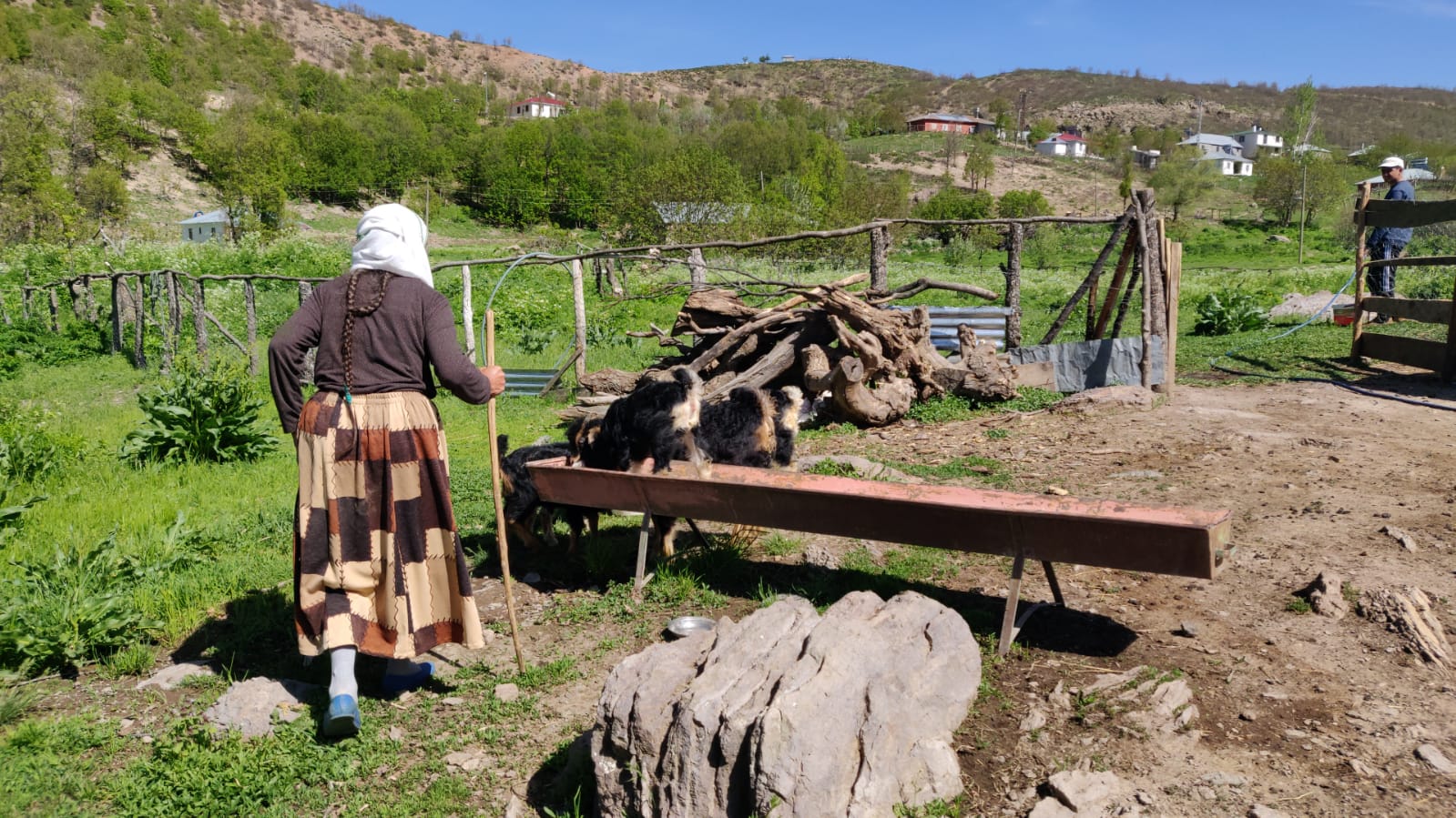 Ben de bu yıl ‘döküldüm’ diyerek yıprandığını belirtiyor. Oğlakları ve hasta keçileri evin çevresinde otlattığını belirtiyor. Aslında benim hayvana bakma zamanım değil ama ne yapayım kimse yok mecbur bakıyorum. Gelinim kızıyla birlikte keçilerin önüne gitmişler. Ben de böyle evin çevresindeki hayvanlara bakıyorum diyor.
