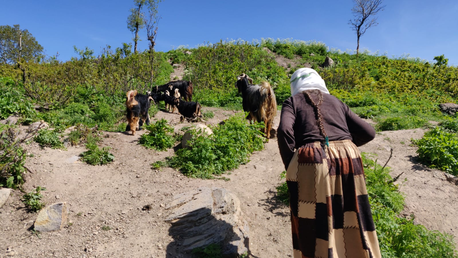 Bingöl Cafran (Dallıtepe) Köyü’ne bağlı Göl Mezrası’nda yaşamını sürdüren Fezile Korkankorkmaz’ı hayvanlarını otlatırken görüyoruz. İlerleyen yaşına rağmen zinde hareketleri dikkat çekiyor. Onun peşinden yürürken nefes nefese kalıyoruz.