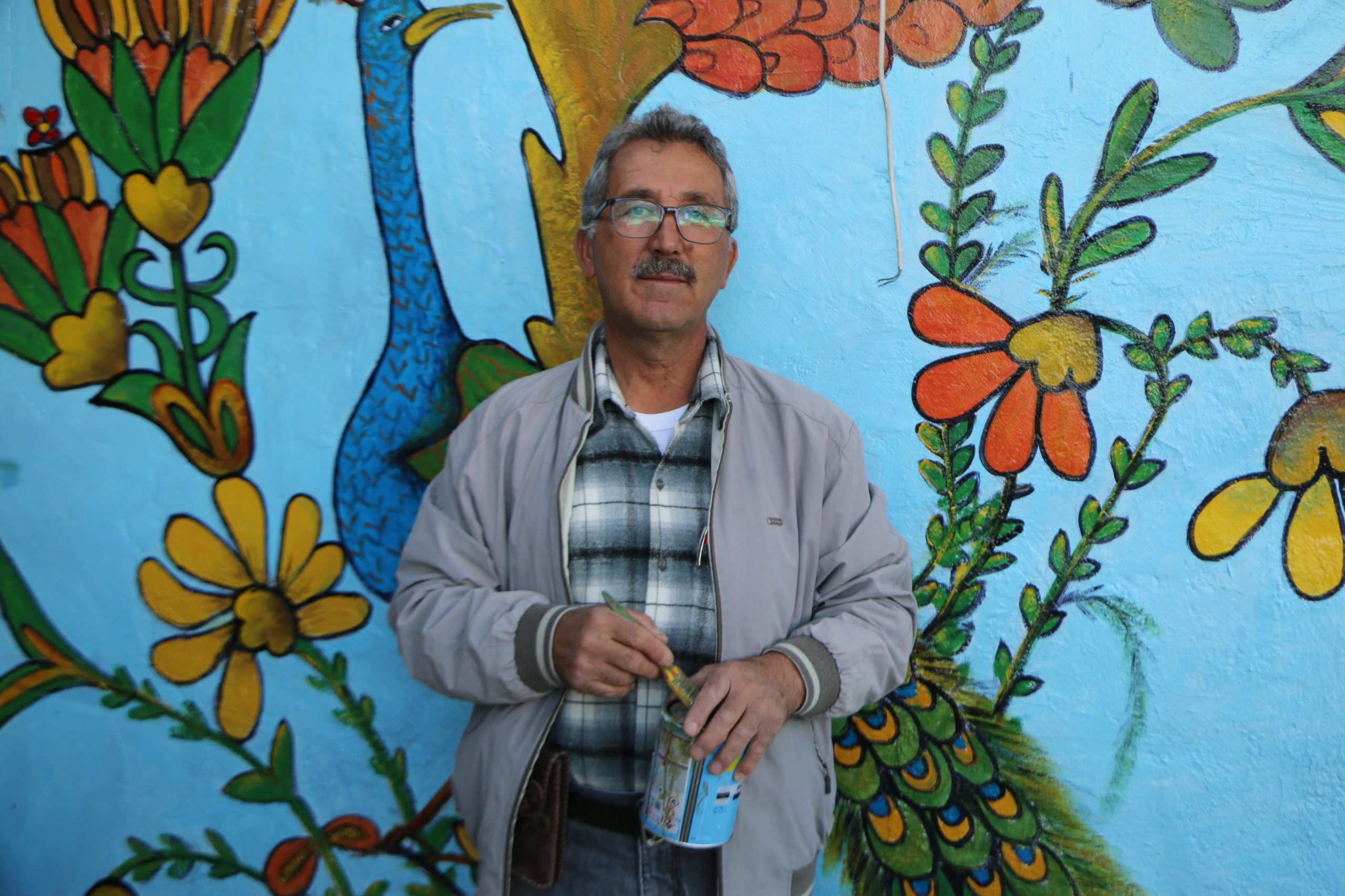 “Evlere, restoranlara, düğün salonlarına, cemevlerine resim yapıyorum,” diyor gururla.