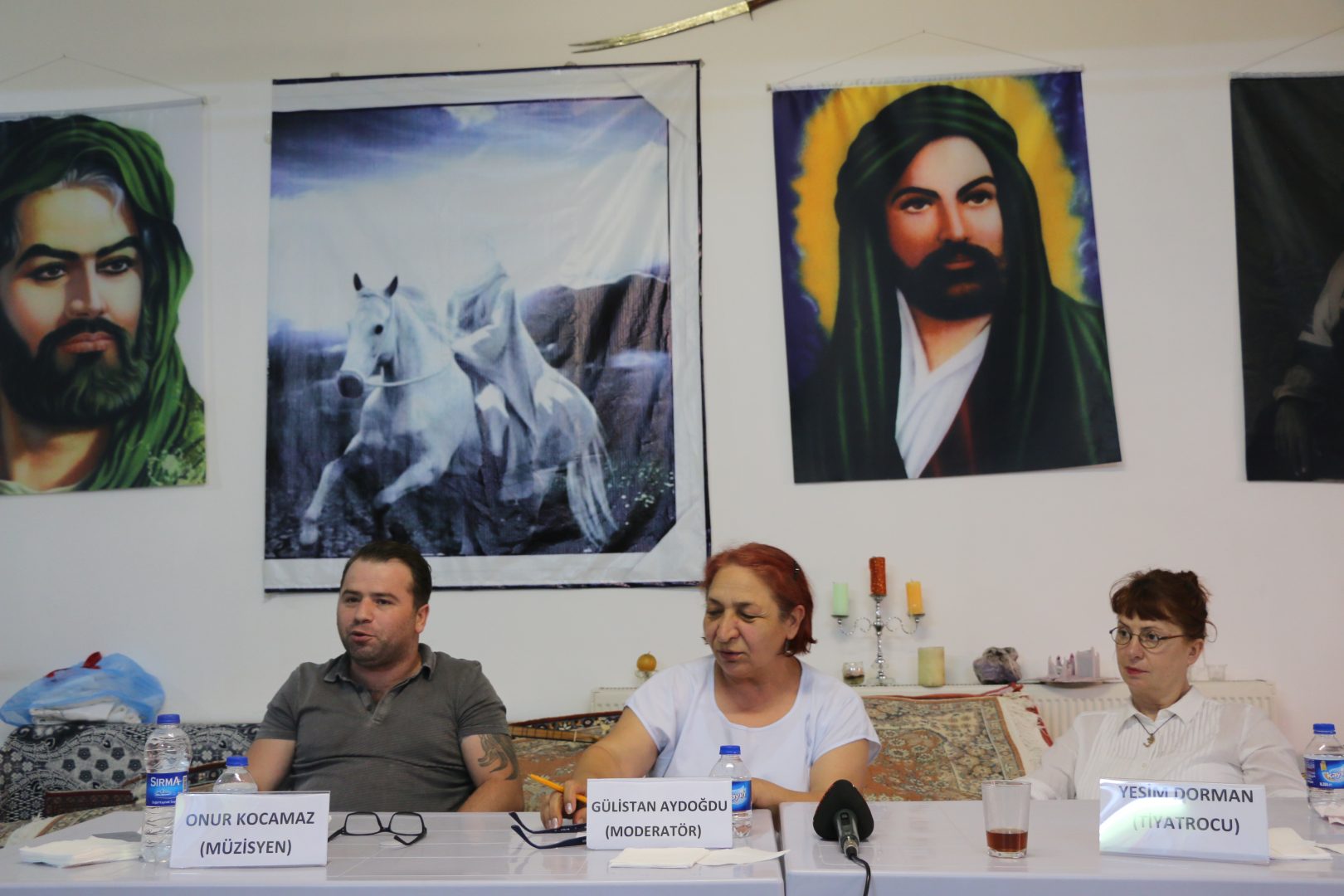 PİRHA- DAD Mamak Ana Fatma Cemevi’nin düzenlediği  ‘Sanatçılar kuşatılmış Aleviliği’  konuşuyor adlı panelde konuşan Tiyatrocu Yeşim Dorman ve Müzisyen Onur Kocaman önemli mesajlar verdi. Dorman, “Devletin çok ciddi bir çabası var. Dünyada olan en içiçe geçmiş ama insan sevgisini merkeze koymuş bir Aleviliği kuşatmaları mümkün değil” dedi. Kocaman ise, “Yıllardır cemlerin nerelerde yapıldığını biliriz. Bizi şatafata yönlendiren, özendiren bir kültür var. 3 katlı 5 katlı cemevleri yaptık. Ne oldu, daha mı kutsal bir yer” diye konuştu.