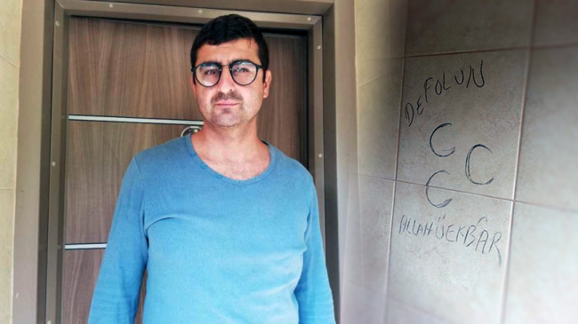 - İzmir Çiğli Yakakent Mahallesi’nde yaşayan Dersimli Sinan Can isimli yurttaşın kapısına Alevi ve Kürt kimliği ile siyasi görüşünden dolayı ‘Defolun’ ve ‘Allahu Ekber’ yazıldı.