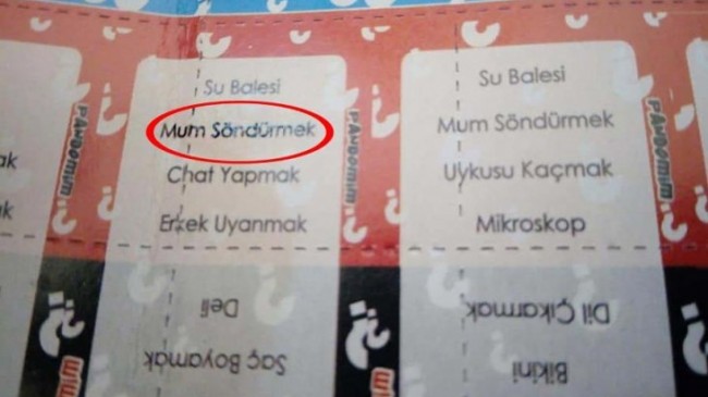 - ‘X Kelime’ adlı kart oyununda uzun zamandır Alevilere hakaret için kullanılan “Mum söndürmek” kelimesinin kullanıldığı ortaya çıktı. Cartoon Oyun ve Oyuncak Sanayi adlı şirketin ürettiği ve Alevilere hakaret için kullanılan “Mum söndürmek” kelimesi, Cem Barlas adlı yurttaşın davacı olacağını bildirmesi üzerine kaldırıldı.