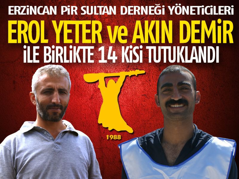 - Mart ayında Pir Sultan Abdal Kültür Derneği (PSAKD) Genel Başkan Yardımcısı Erol Yeter, Erzincan Şube Yöneticisi Akın Demir, PSAKD üyeleri Murat Demiray ve Doğan Şimşir’in de aralarında bulunduğu 16 kişi gözaltına alındı. 8 kişi ifadenin ardından tutuklandı. 28 Kasım’da görülen duruşmada ise bir kişi serbest bırakıldı.