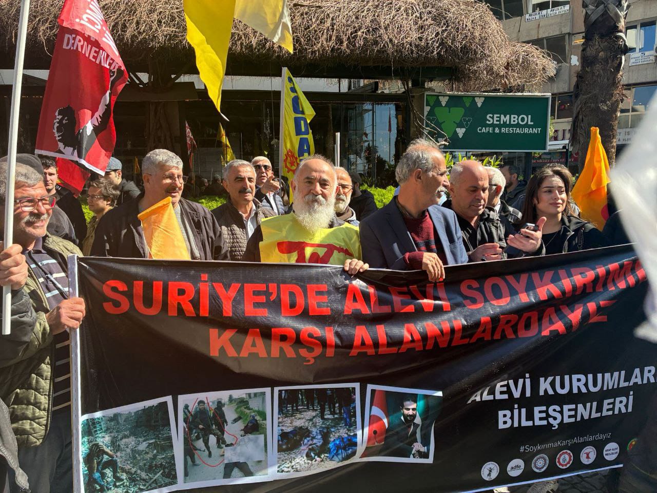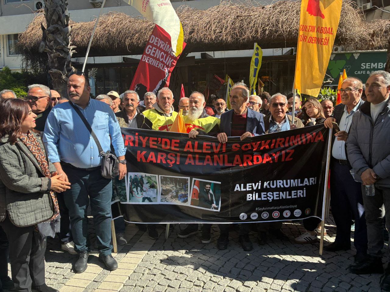 İzmir’de bulunan Alevi kurumları, Konak Eski Sümerbank önünde açıklama yaptı. “Suriye’de Alevi soykırımına karşıyız” pankartı açılan açıklamada “Katil Colani Suriye’den defol”, “Savaş hayır barış hemen şimdi” ve Suriye’de Alevi katliamı var” sloganları atıldı. Açıklamaya Halkların Eşitlik ve Demokrasi Partisi (DEM Parti) milletvekilleri Gülistan Kılıç Koçyiğit ve Burcugül Çubuk’un yanı sıra kentte bulunan siyasi parti ve kurumlar da katıldı.
