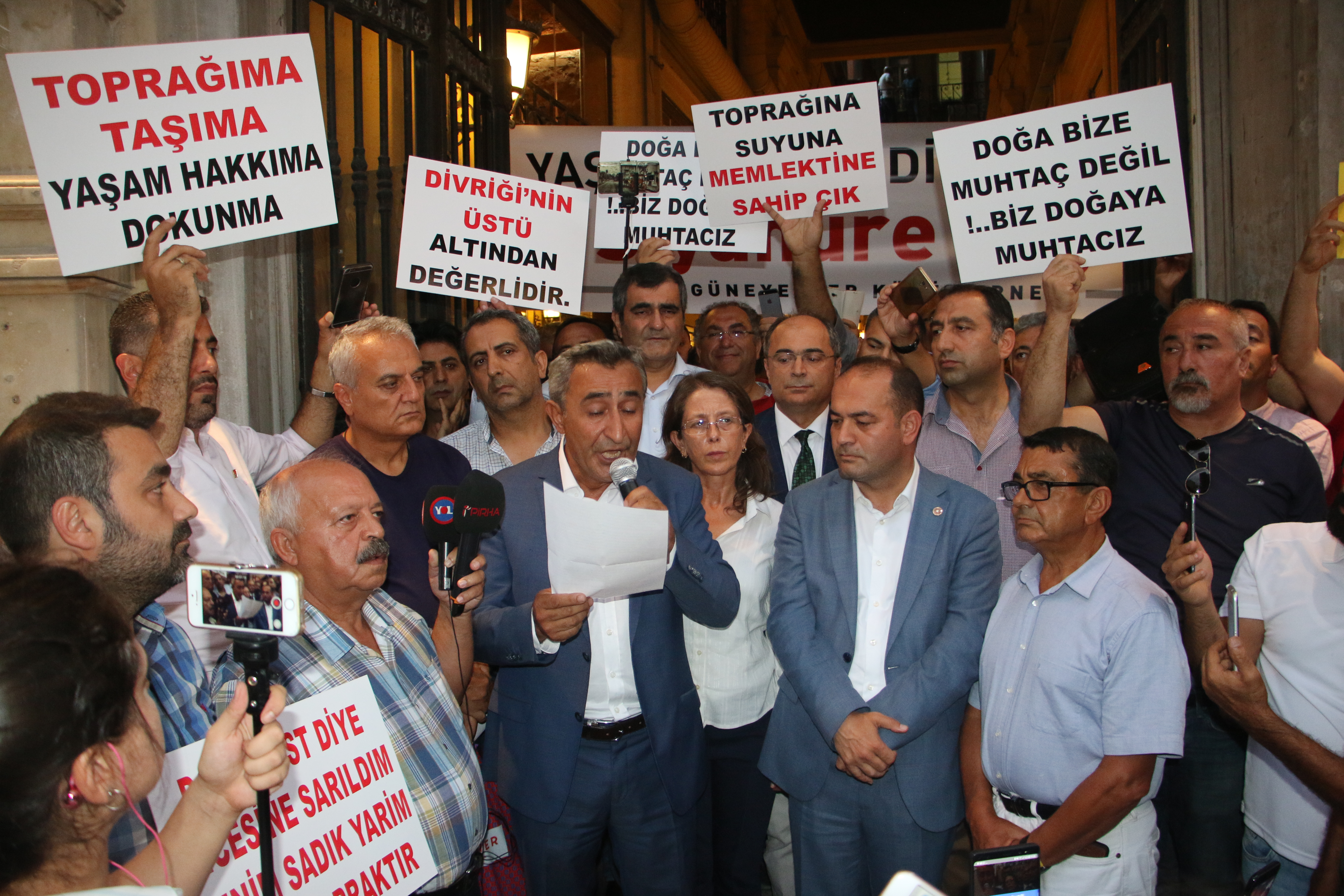 Basın açıklamasını Divriği Kültür Derneği Başkanı Cafer Yıldız yaptı. Yıldız, altın arama faaliyeti yapılmak istenen Mursal’ın Divriği’nin yegane su kaynağı olan bir bölgesi olduğunu söyledi. “Divriği’nin içme suyu ve tarımsal sulama suyu bu bölgedeki barajdan sağlanmaktadır. Aynı zamanda tarımsal üretimin ve hayvancılık faaliyetinin yapıldığı bir bölgedir. Divriği’nin yaşam kaynağıdır. Can damarıdır” diyen Yıldız bu altın madeni işletmesinin kurulması ile yapılmak istenen içme suyu projesinin çöpe gideceğini vurguladı.