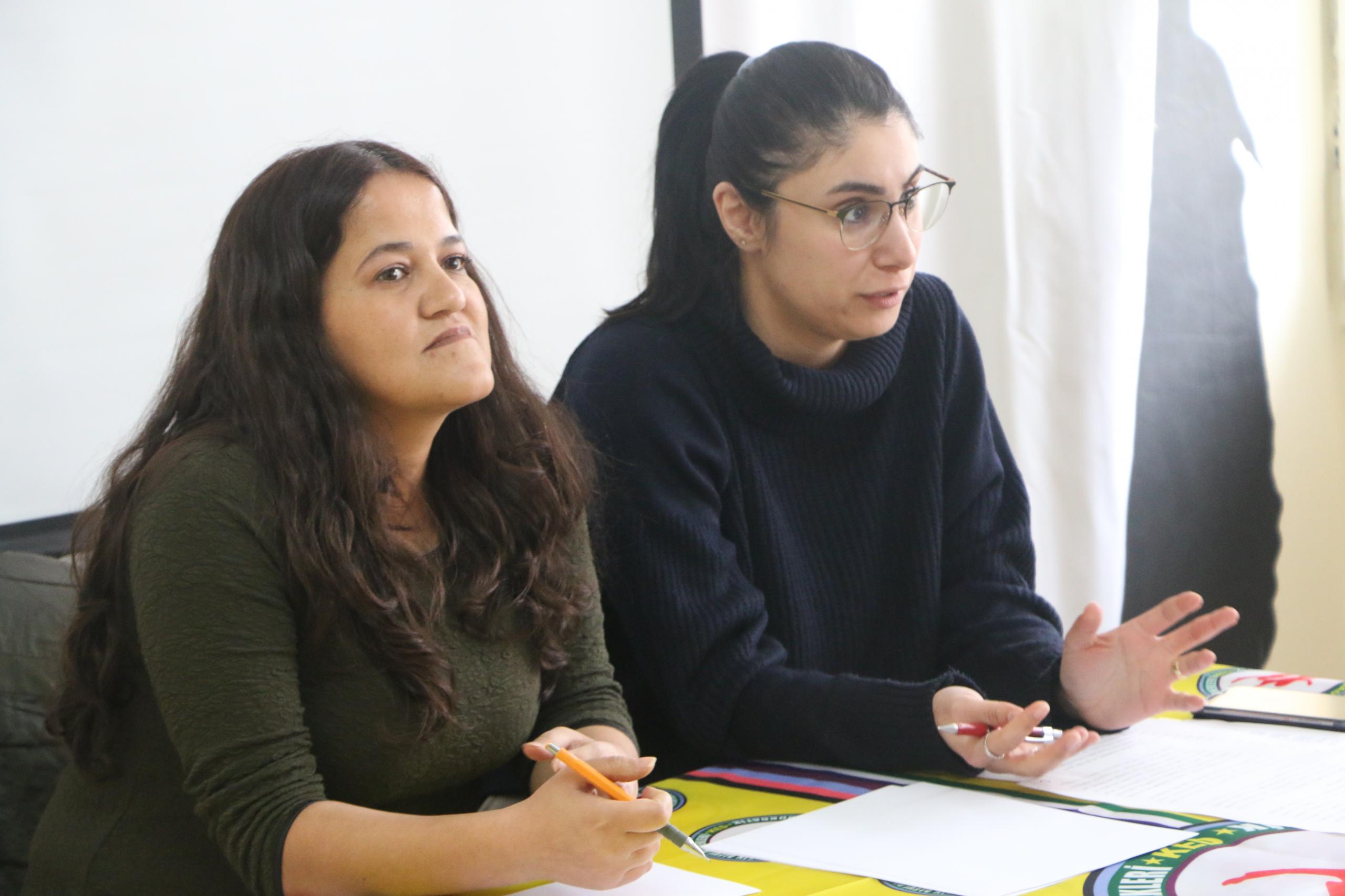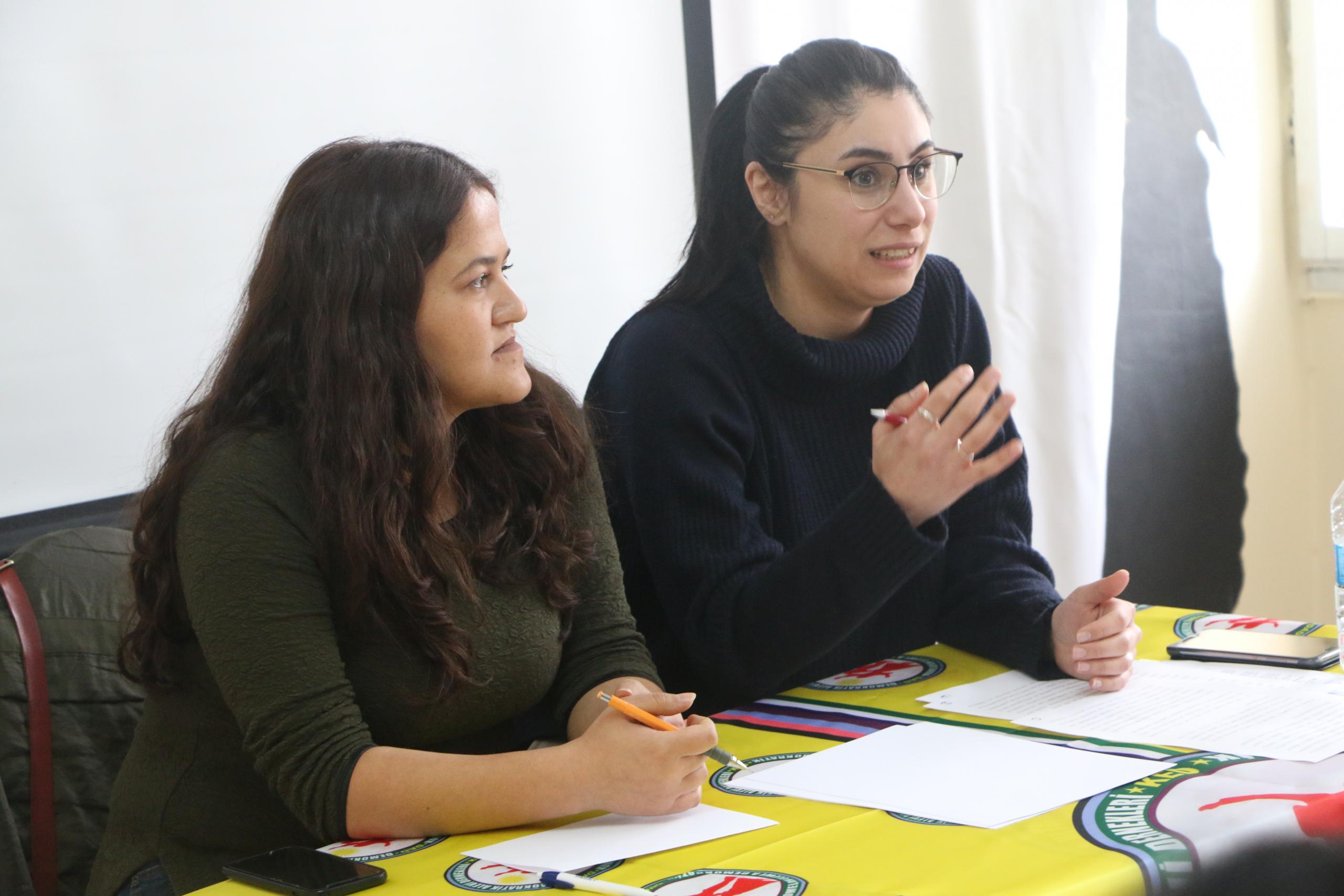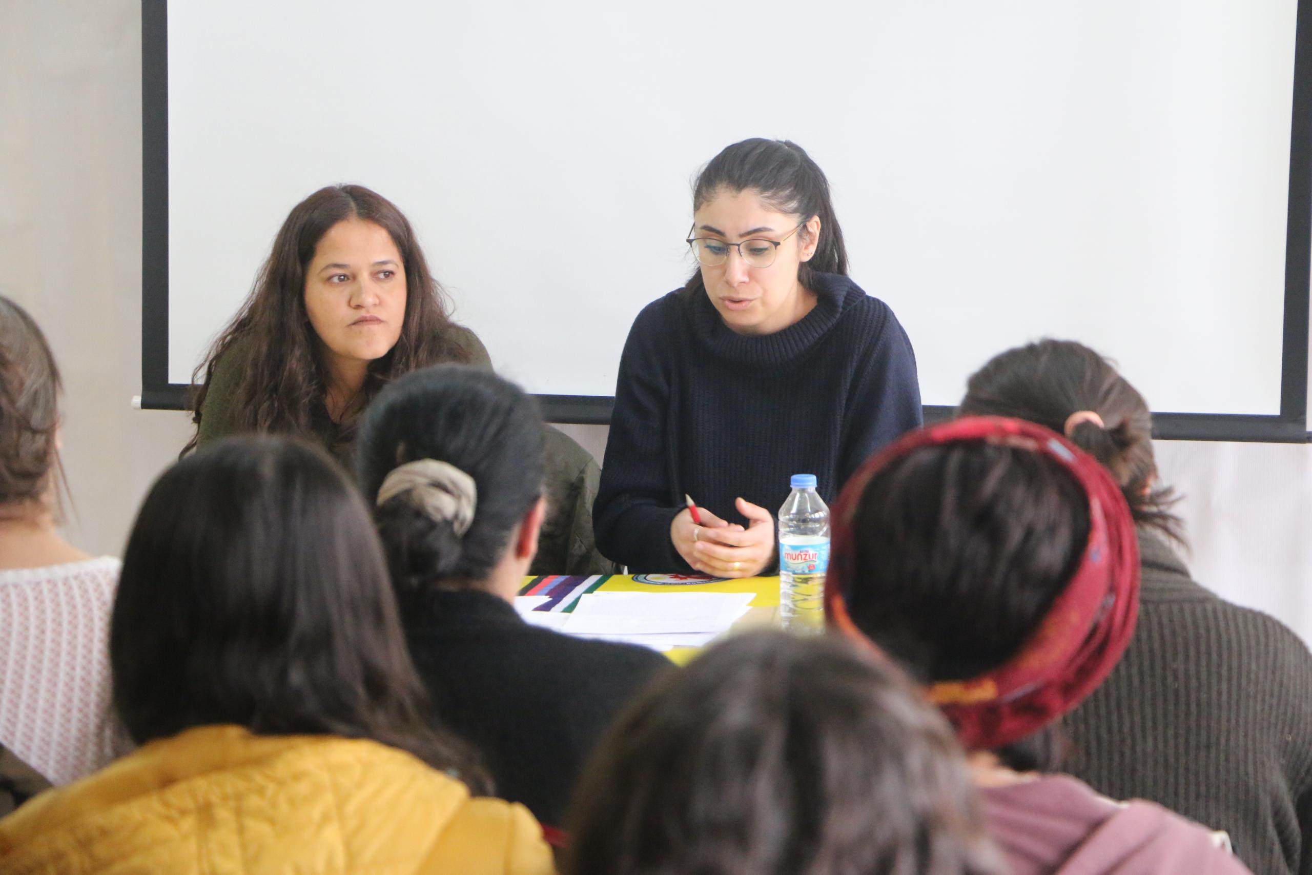 Kadın örgütlerinde bir geri çekilme yaşandığını dile getiren Psikolog Duygu Kurban, alanların boş kaldığı zaman başkaları olumsuz bir şekilde doldurduğunu ifade etti. Üniversitede tecavüz, şiddet olaylarını duyduklarını belirten Kurban, “Bu kişiler rütbeli oldukları için yaşanan taciz karşısında öğrenci üniversiteyi terk ediyor. Bu söyleşiyi de yalnız olmadığınızı bilmeniz için gerçekleştirdik. Kadınlara çok güzel haklar tanınıyor. Fakat mücadele etmeden çok mümkünatı yok. Biz kadınlar bir araya geldikçe davalardan sonuç alıyoruz. Peki biz nasıl ulaşacağız? Yalnız hissetmemesi için neler yapabiliriz? Son dönemde yaşananların kolluk kuvvetlerinin isimleri geçiyor. Savaş şiddeti, şiddette kadınları vuran bir süreç oluyor” şeklinde konuştu.