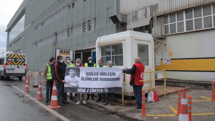 Devrimci İşçi Sendikaları Konfederasyonu’na (DİSK) bağlı Gemi Yapımı ve Deniz Taşımacılığı, Ardiyecilik ve Antrepoculuk İşçileri Sendikası (Limter-İş), Tuzla’da faaliyet gösteren DESAN Tersanesi’nde iş cinayeti sonucu yaşamını yitiren Ekrem Delice için işyeri önünde basın açıklaması yaptı.