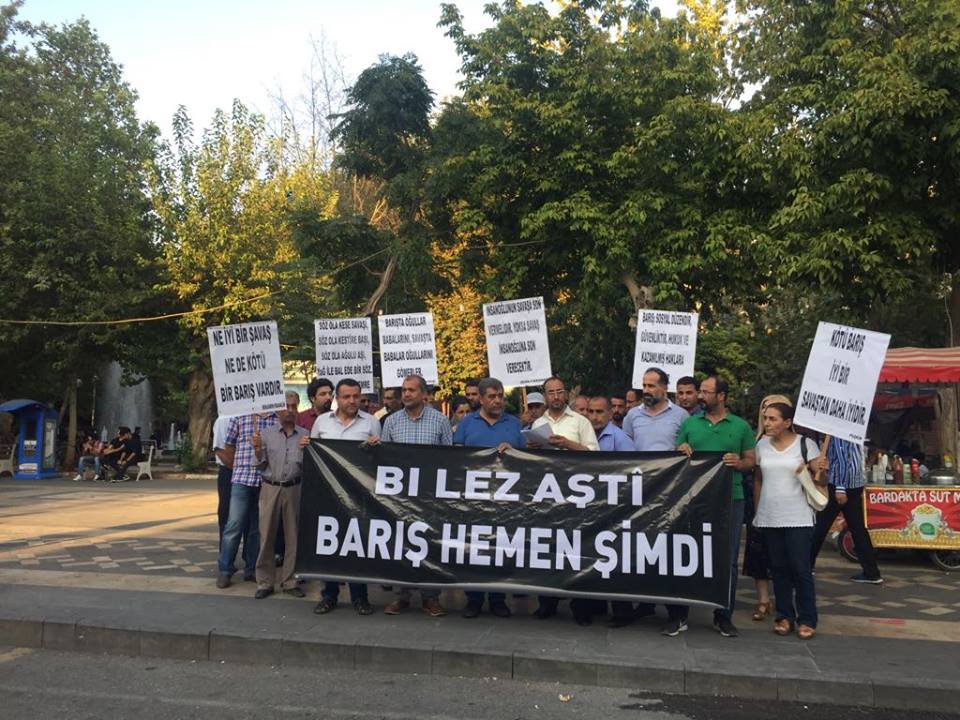 Adıyaman’da İHD Adıyaman şubesi öncülüğünde 1 Eylül Dünya Barış Günü vesilesiyle Demokrasi parkında toplanan kitle Kürtçe ve Türkçe yazılı “Barış hemen şimdi” pankartı açarak, “Ne iyi bir savaş nede kötü bir barış vardır”, “Kötü barış iyi bir savaştan iyidir” dövizleri taşıdı. Demokrasi parkında toplanan kitle sık sık “Savaşa hayır barış hemen şimdi” sloganları attı. Basın açıklamasına KESK bileşenleri ve STK temsilcileri de destek verdi.